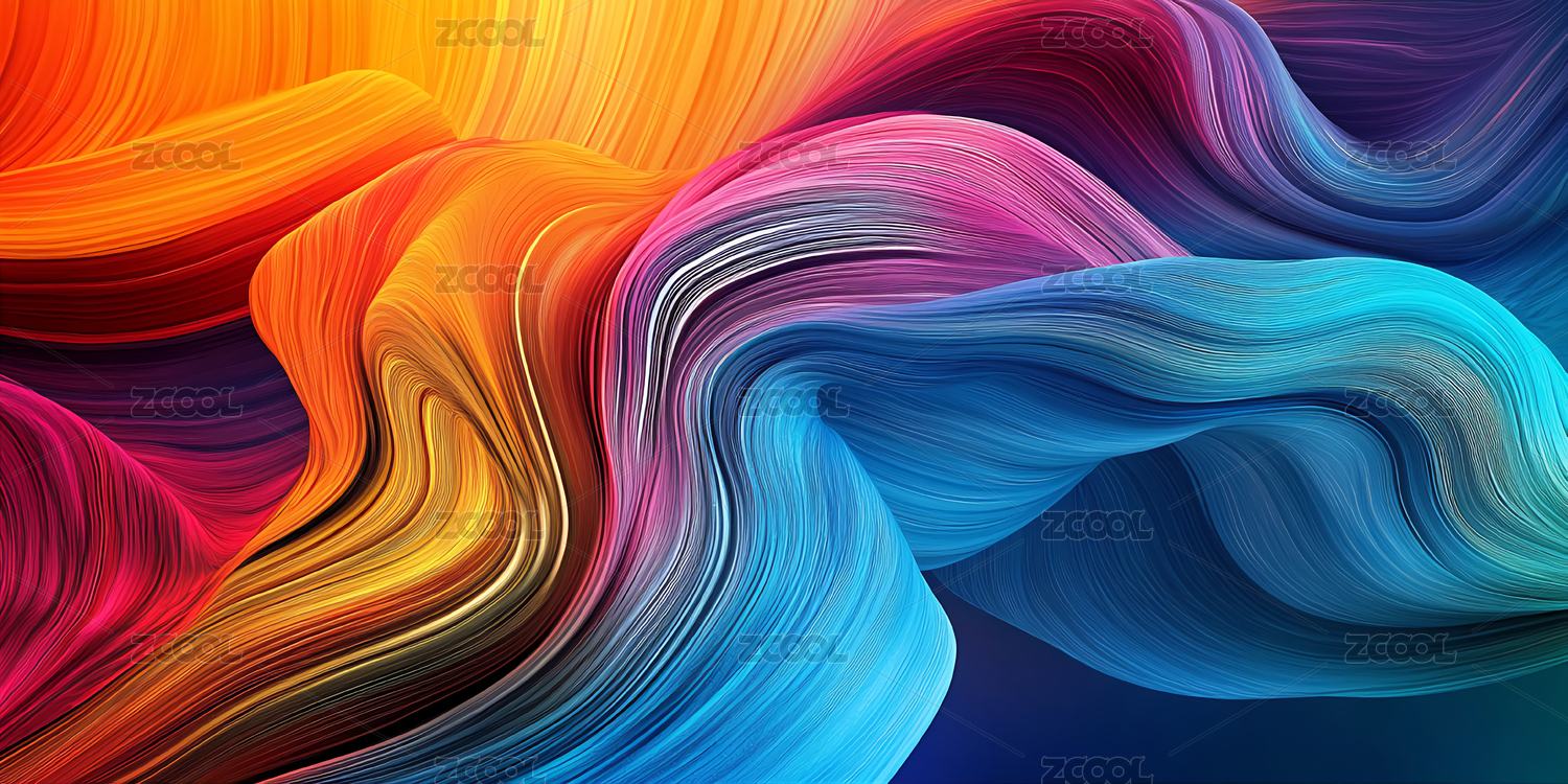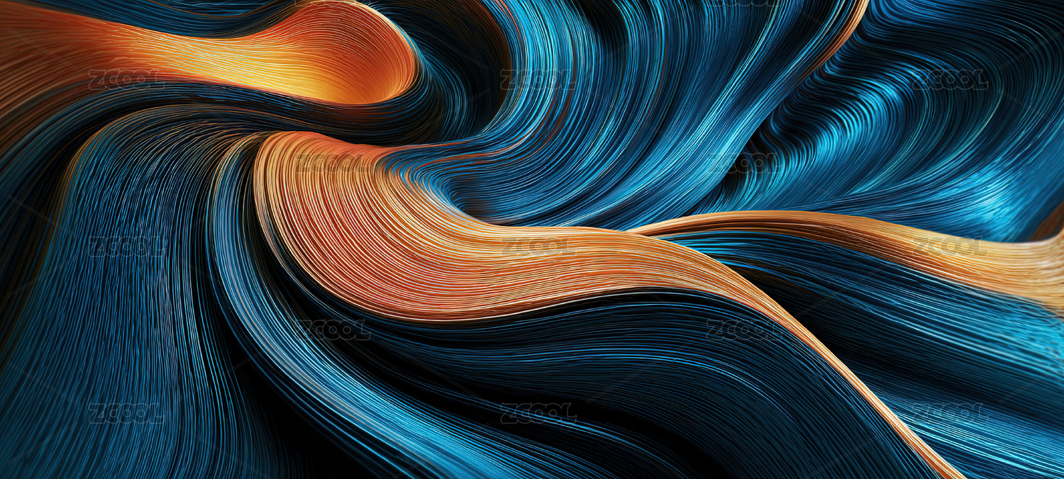 数码橘蓝色渐变层叠波浪抽象图形海报背景