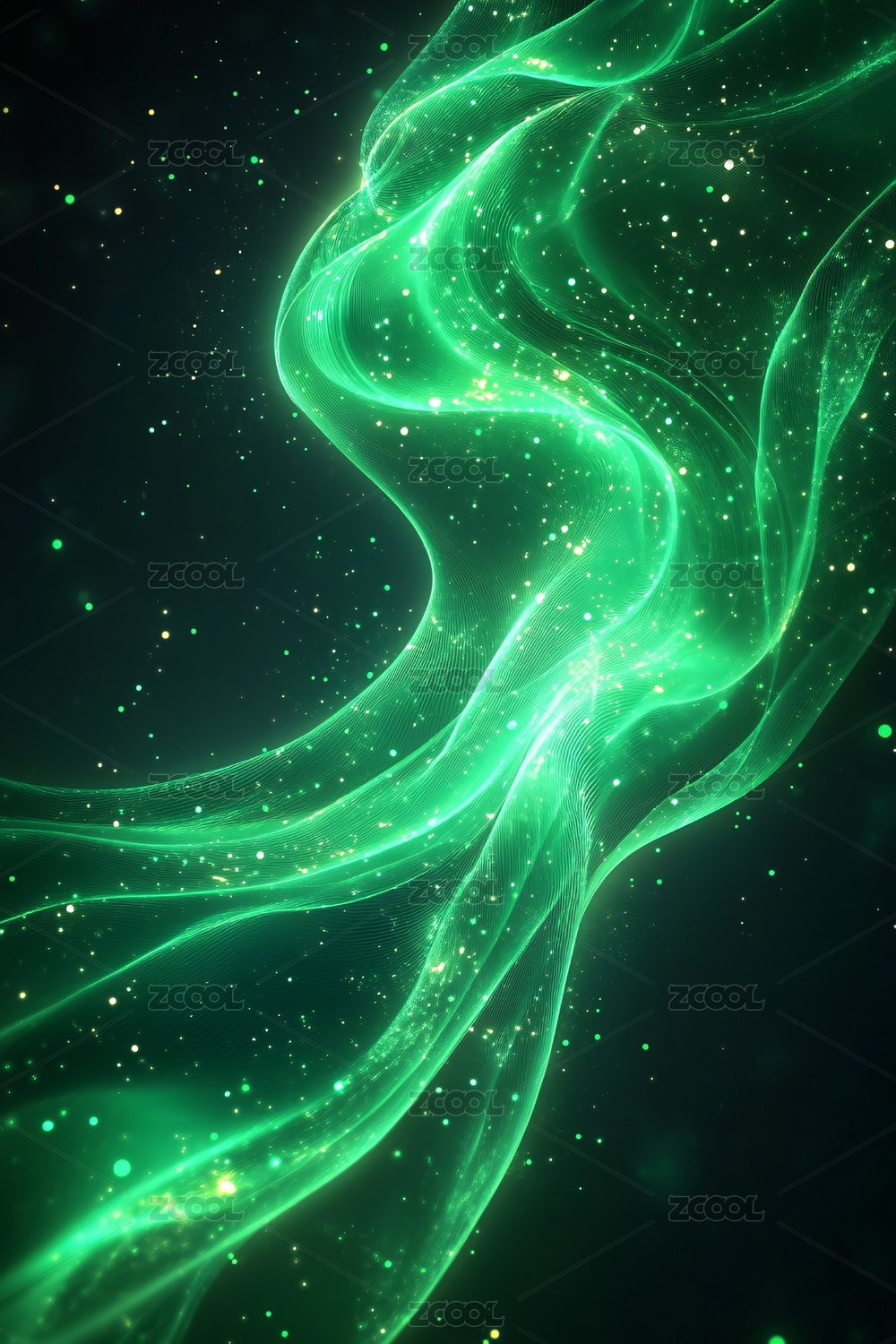 光影,现代,梦幻,色彩,明亮,绿色,艺术,光流,交织,粒子