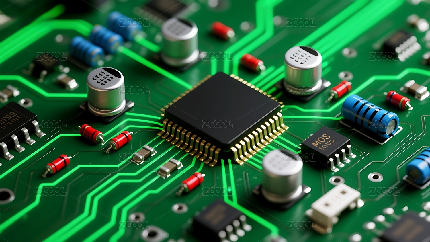 电子芯片科技感电路板特写场景