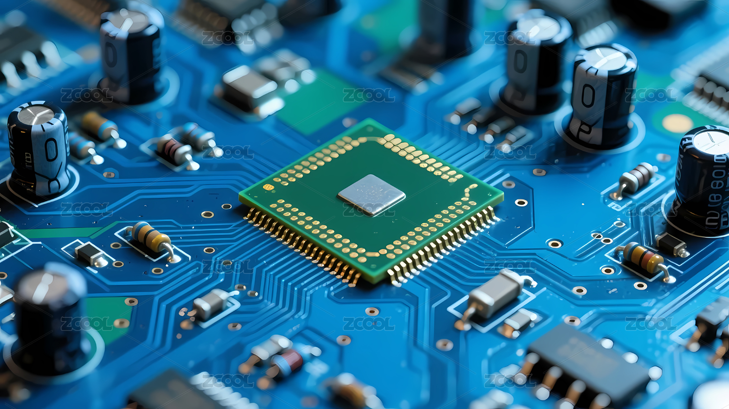 黑色芯片与蓝色电路板