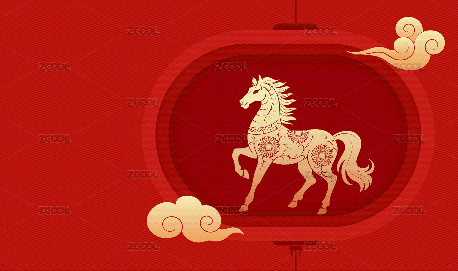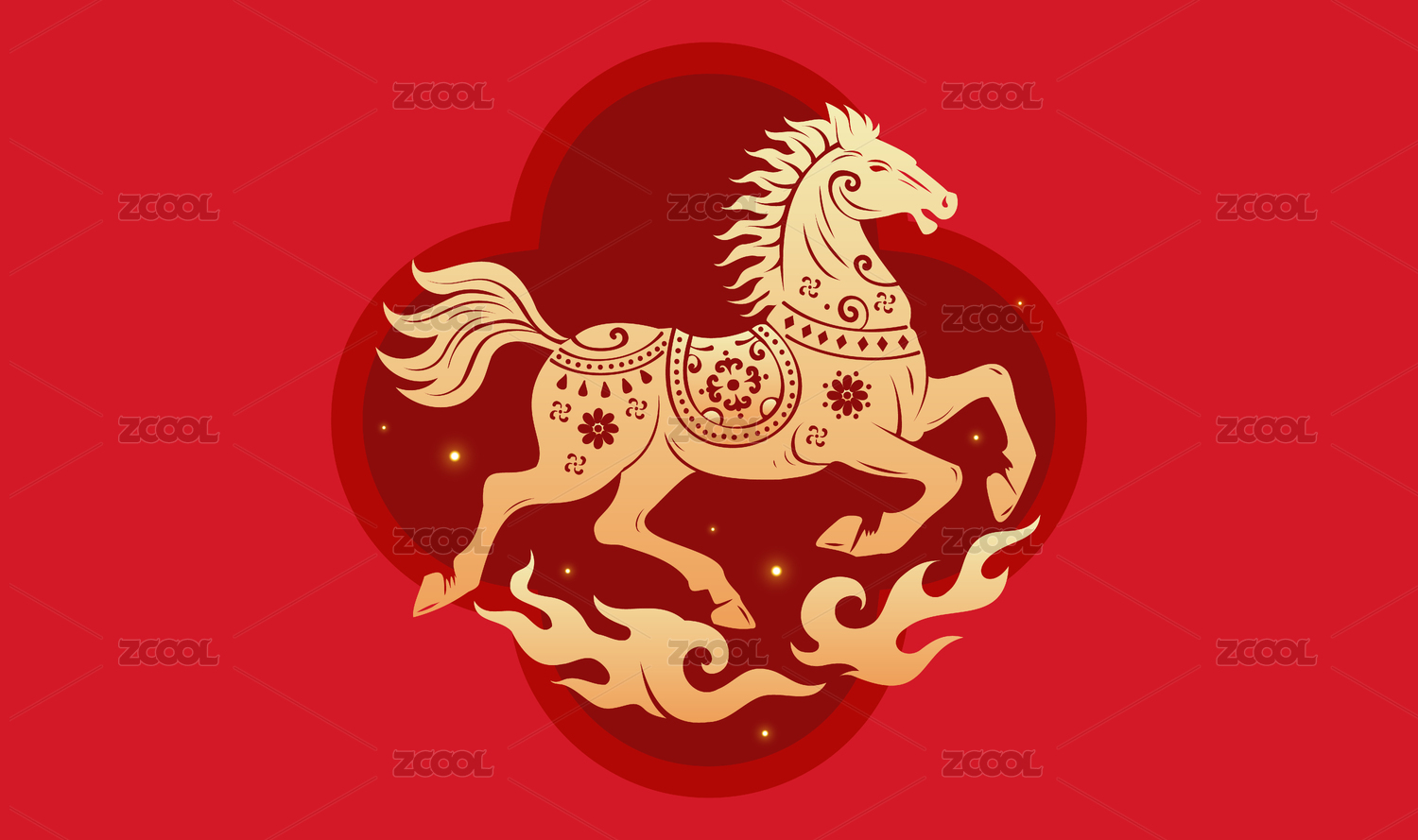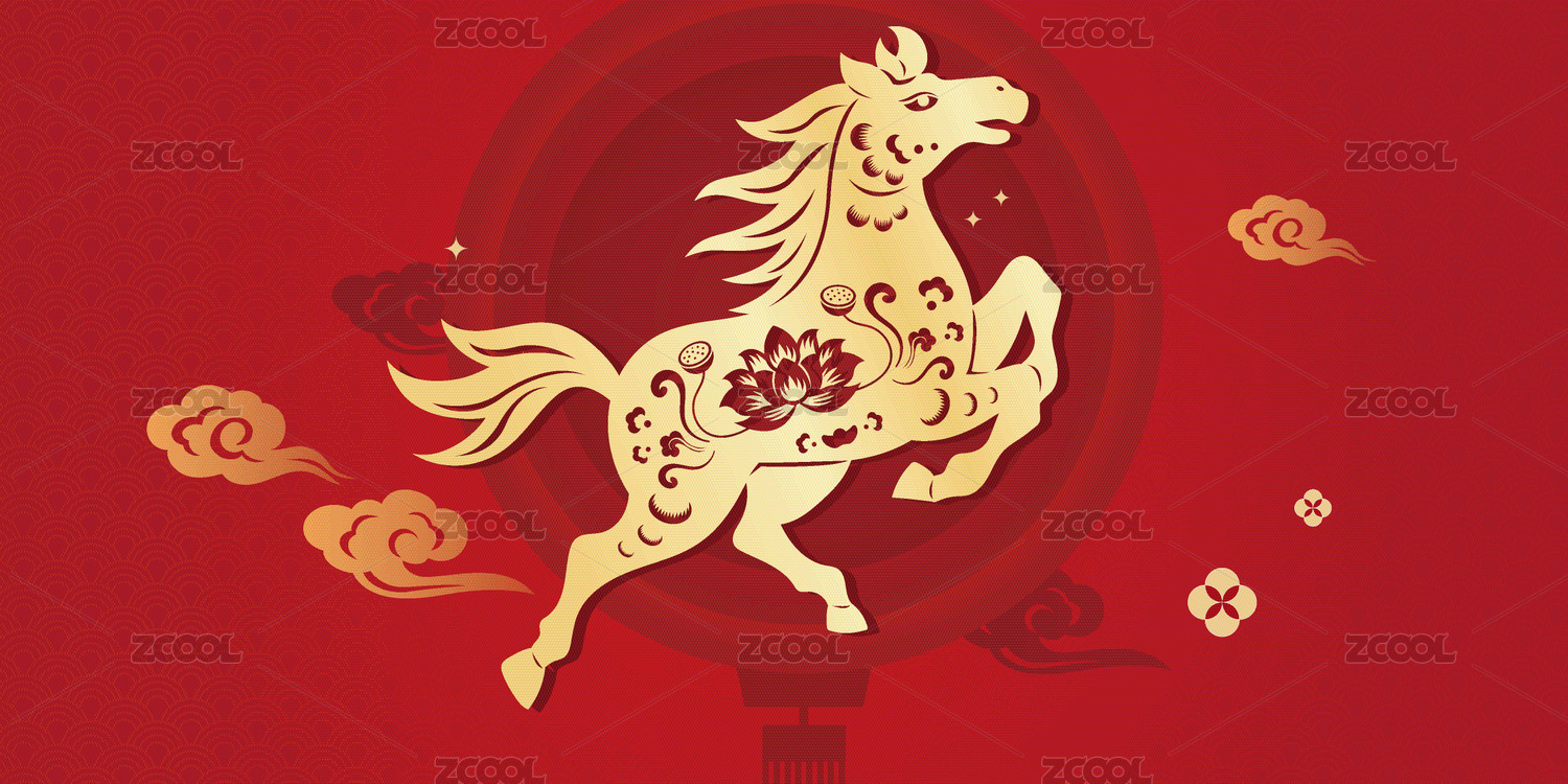 金色骏马装饰图案红底背景