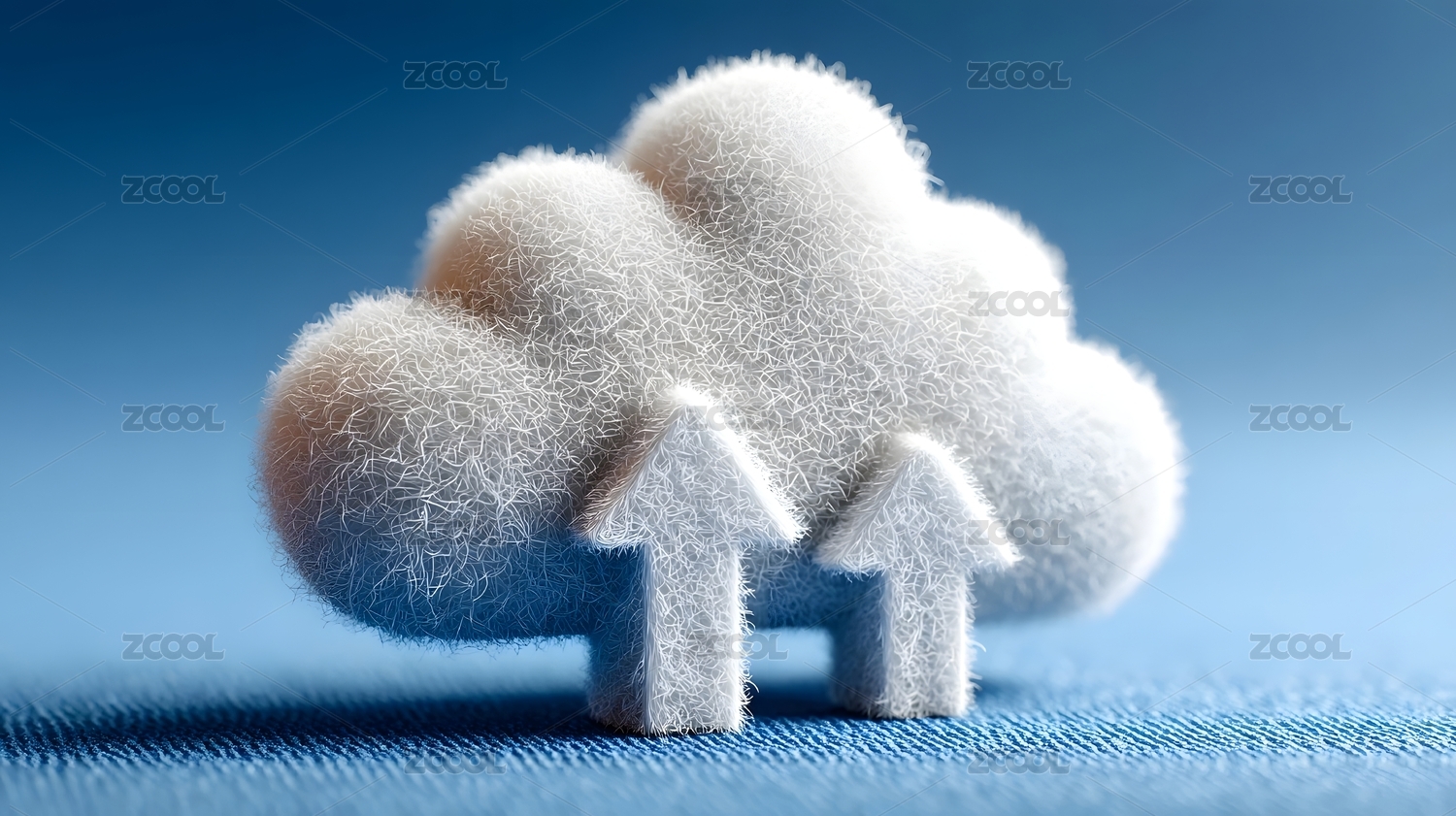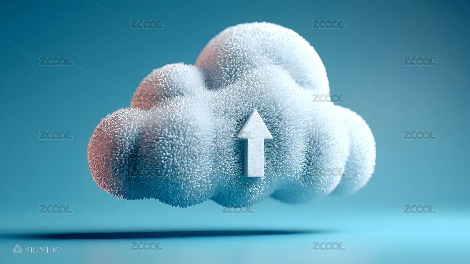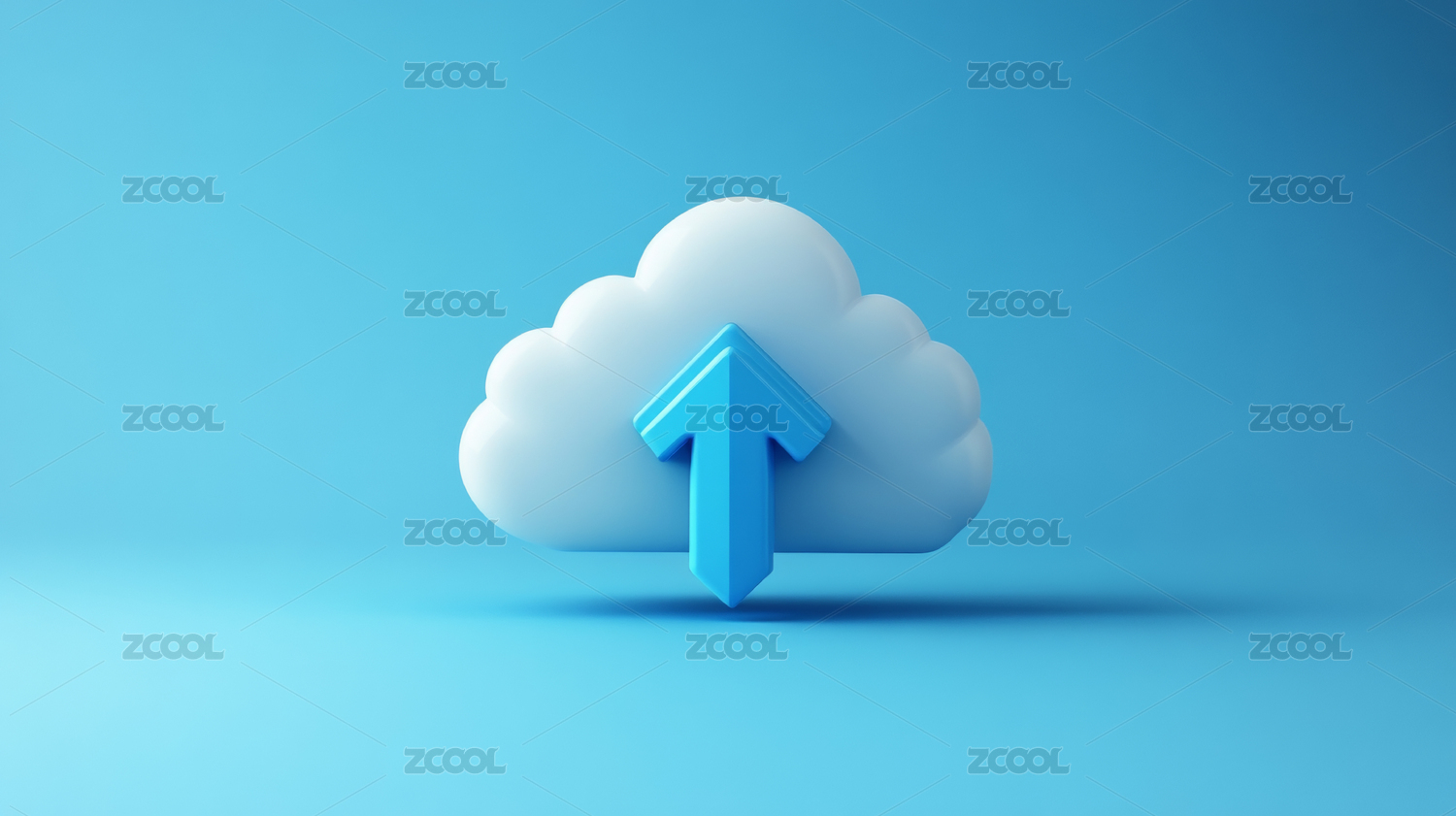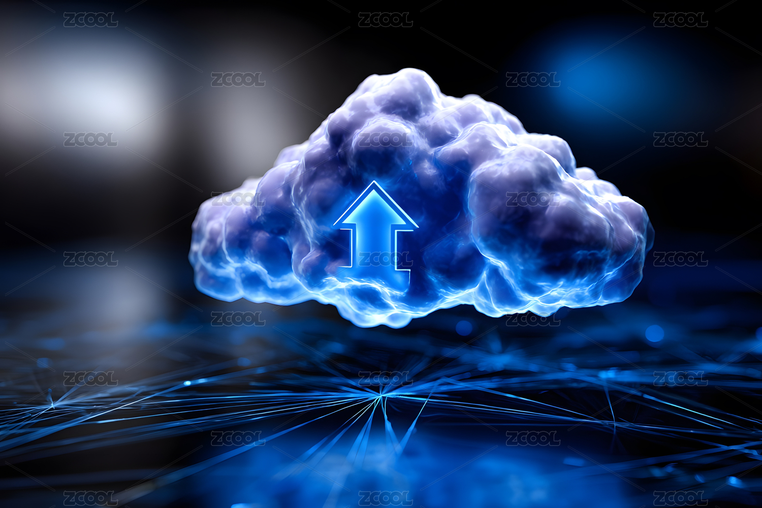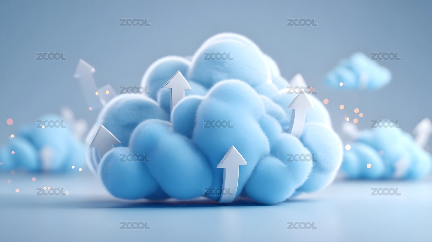 蓝色云朵中的上传箭头科技感图像