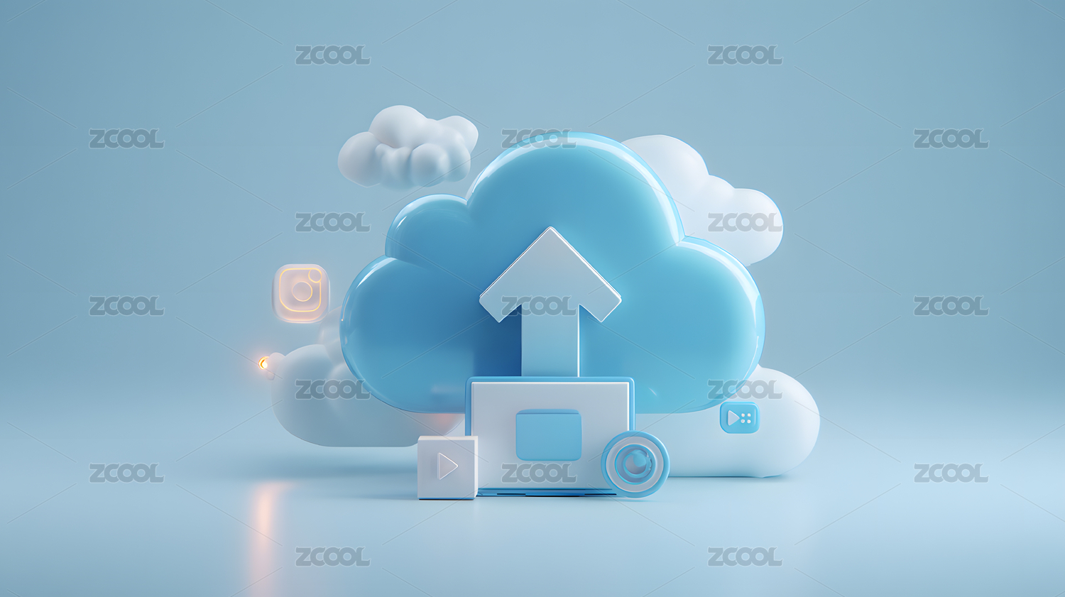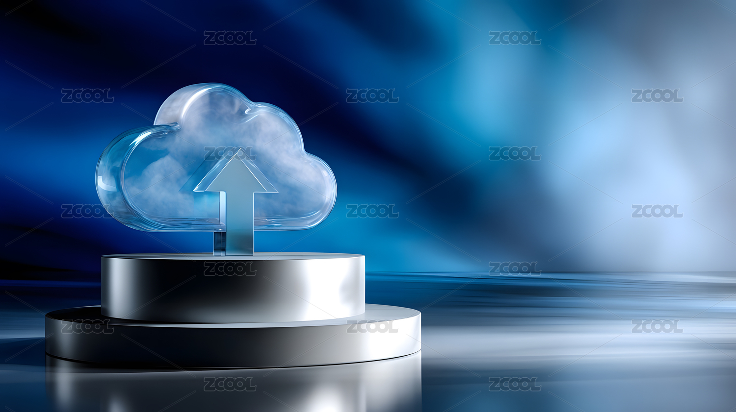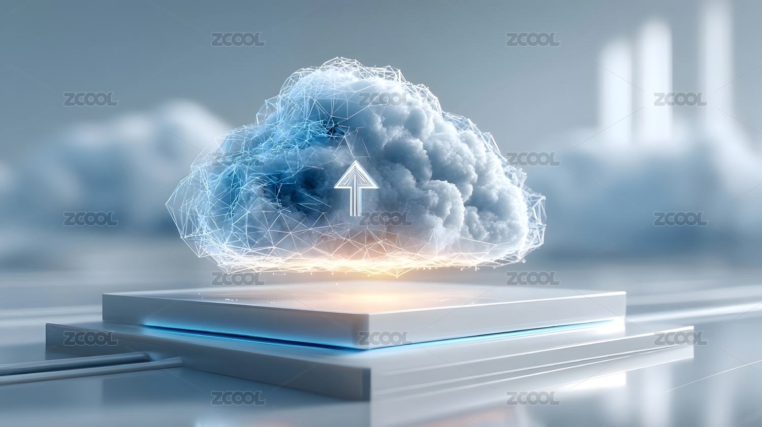 云朵造型上传图标置于金属底座
