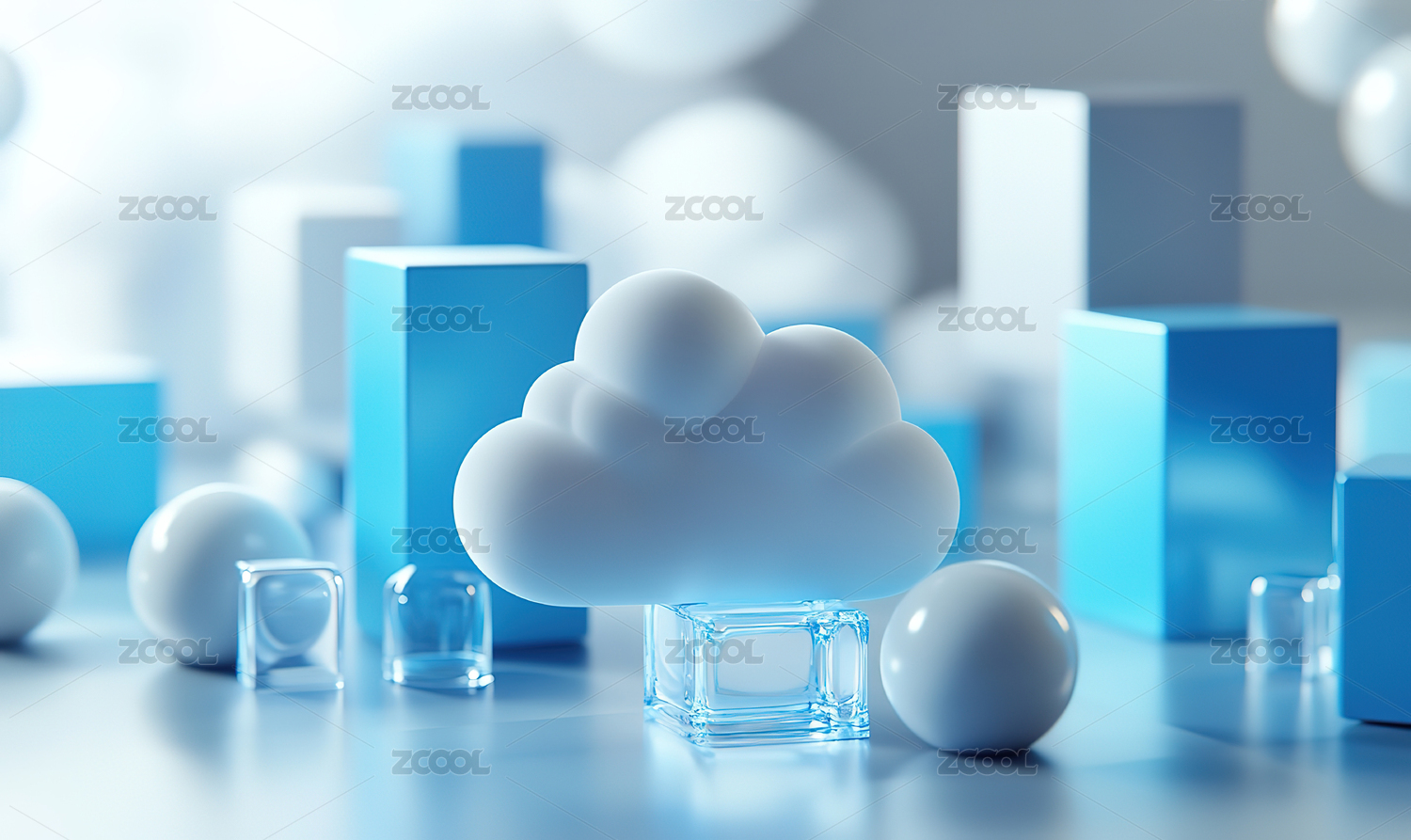 蓝色云朵模型置于文件之上