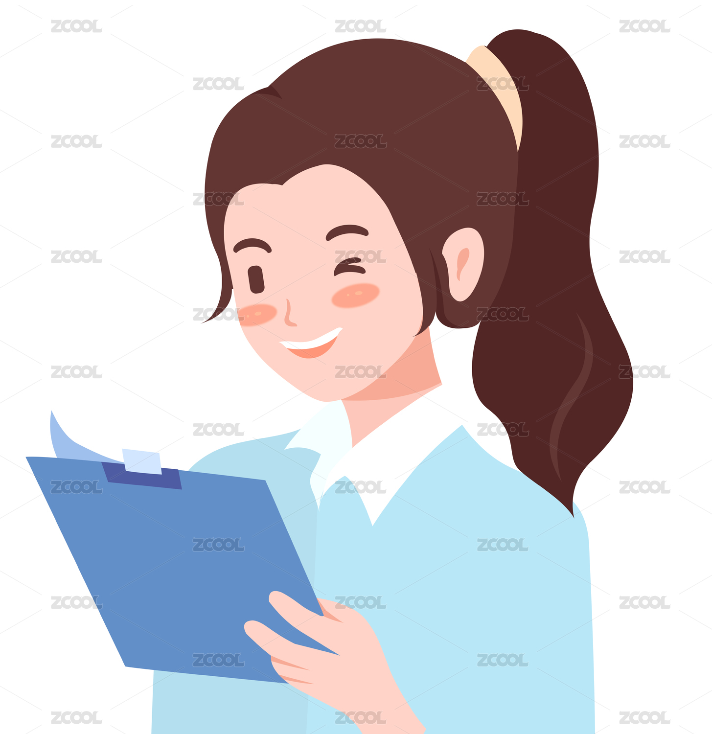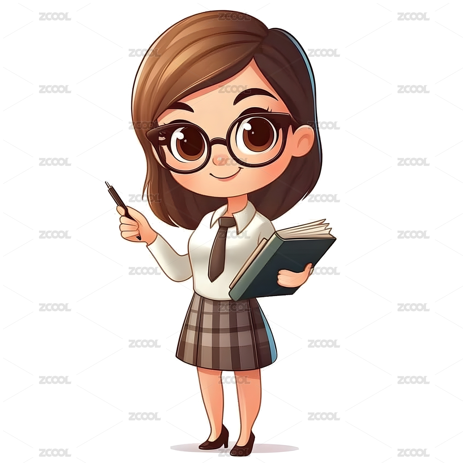 卡通风可爱儿童孩子女孩拿着书本小老师插画