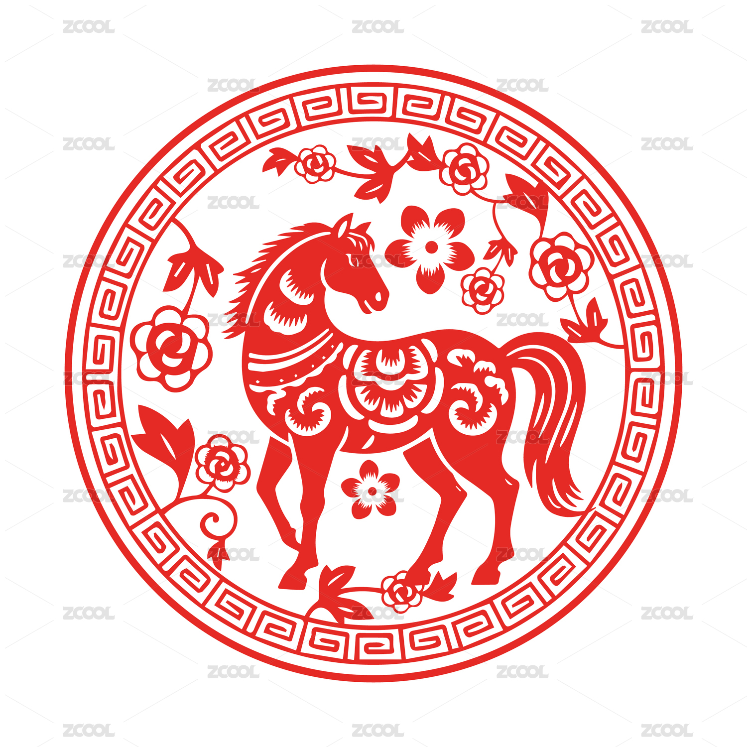 红色,剪纸艺术,东方,剪纸,复古,传统,圆形,花卉,复古风,生肖
