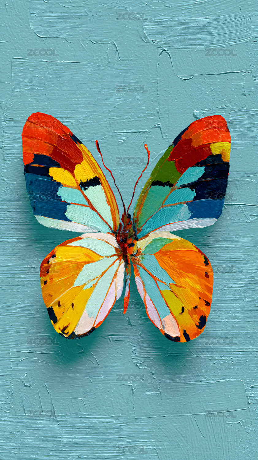 油画笔触下色彩斑斓的蝴蝶