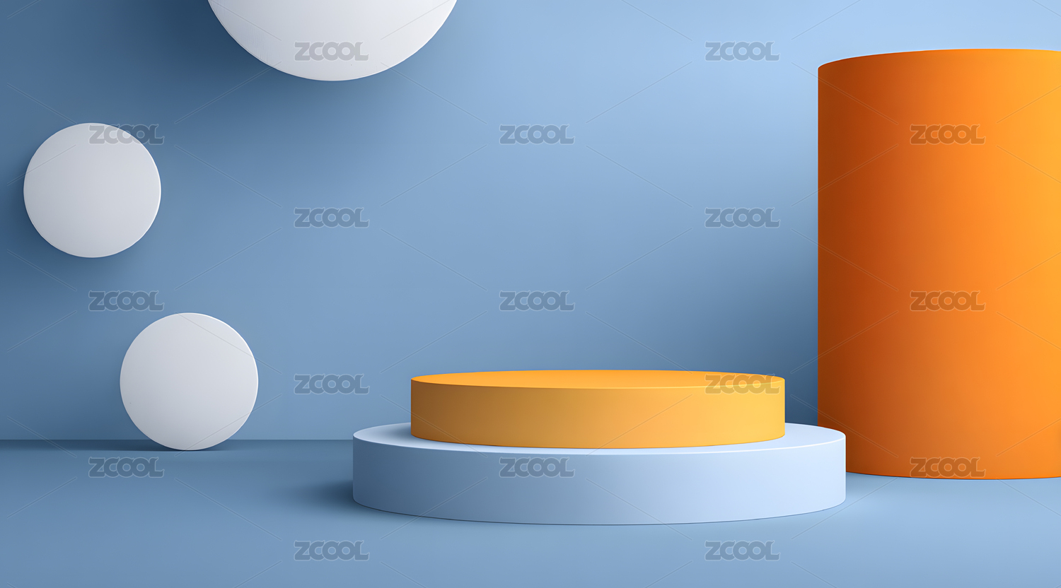 橙蓝渐变背景下的圆形展台