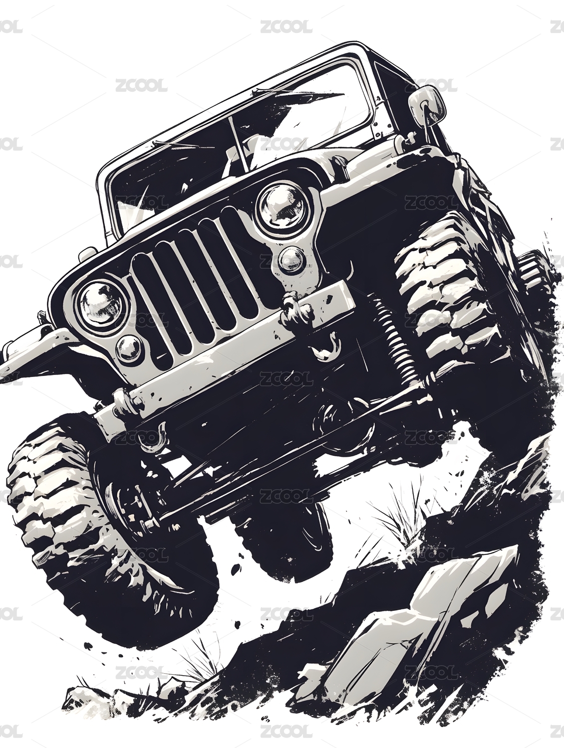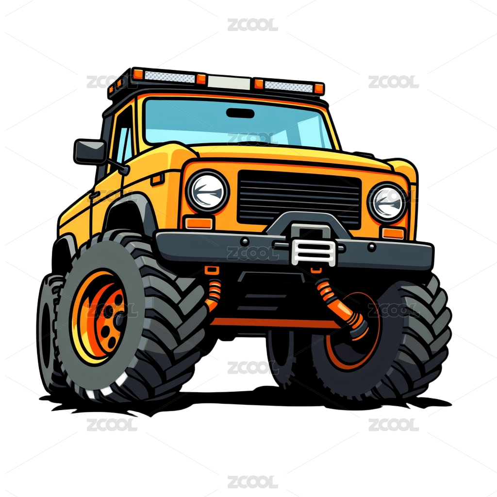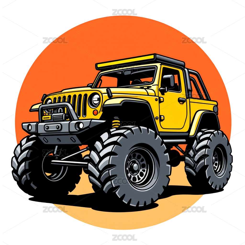 复古卡通户外越野吉普车插画图案