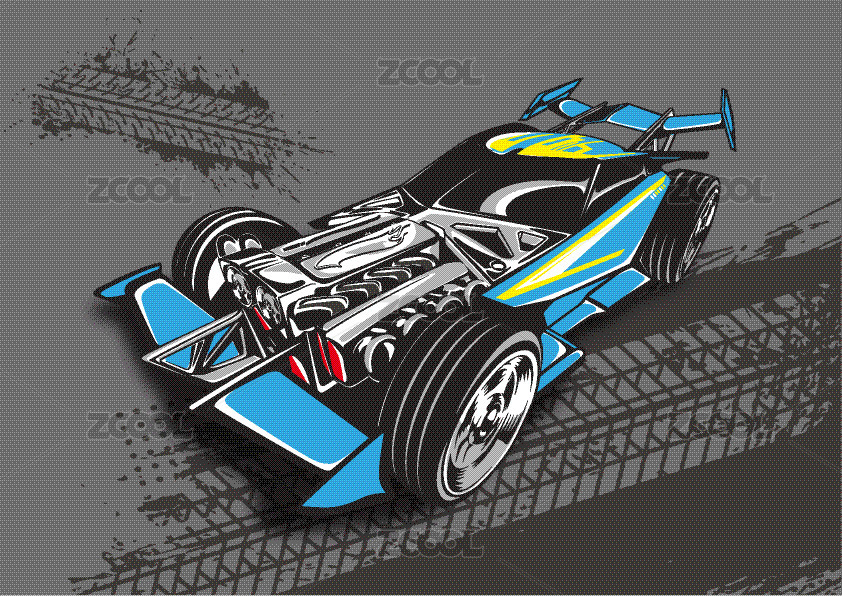 卡通复古机械老爷车赛车图案