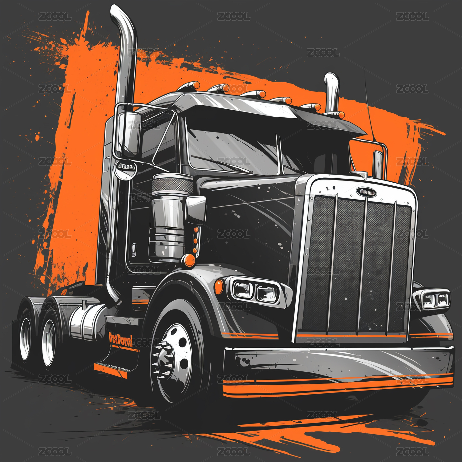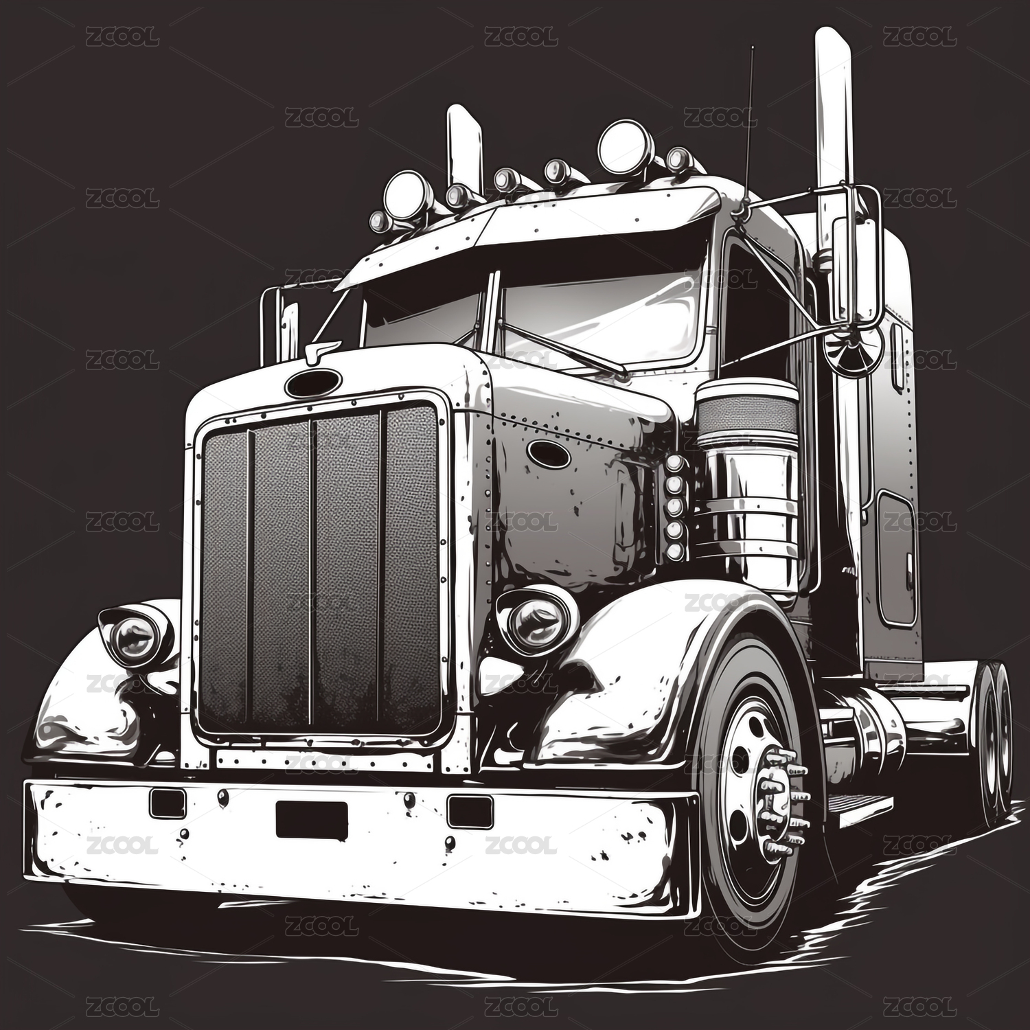 炫酷黑白风格重型卡车机械装饰插画