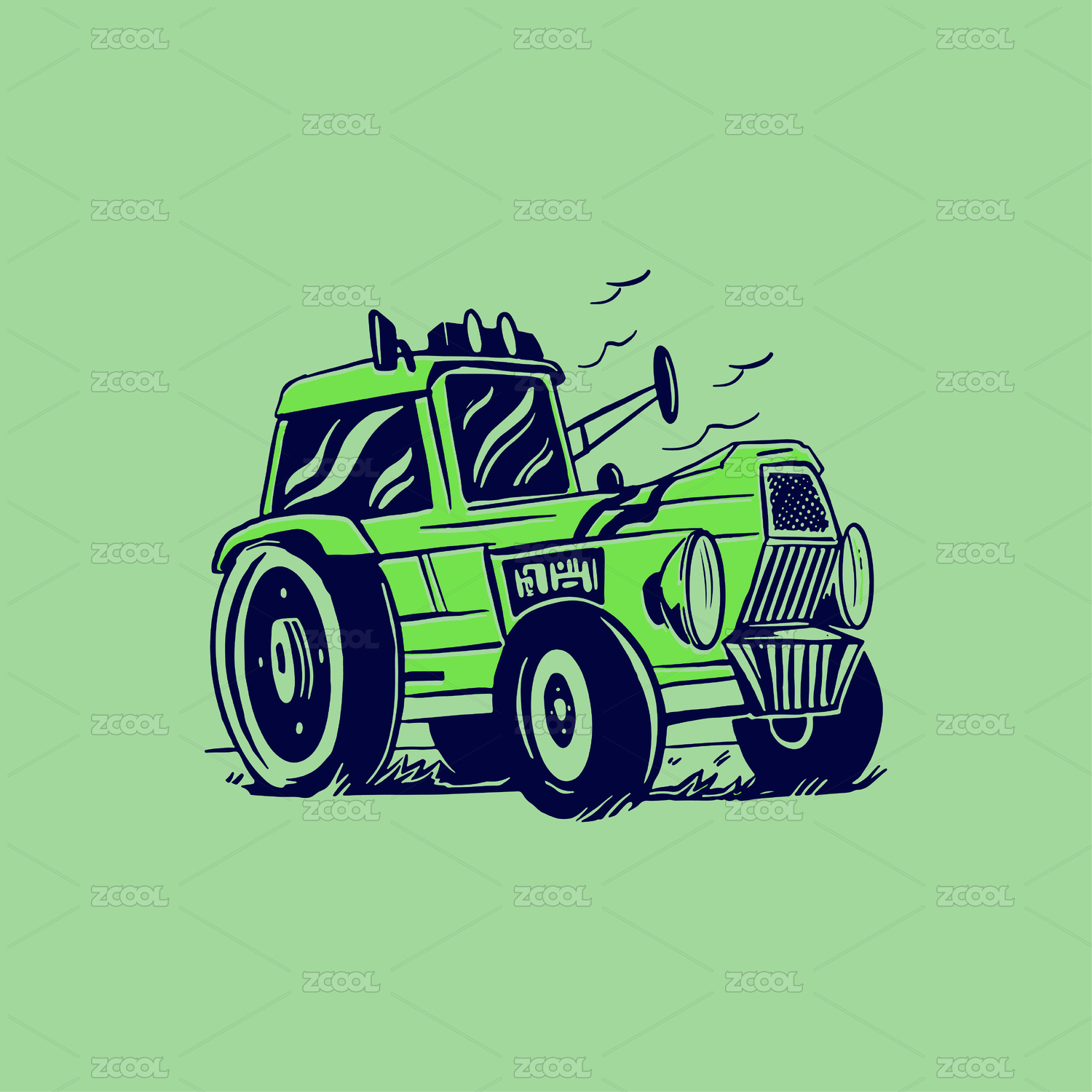 浅绿色的拖拉机手绘图案