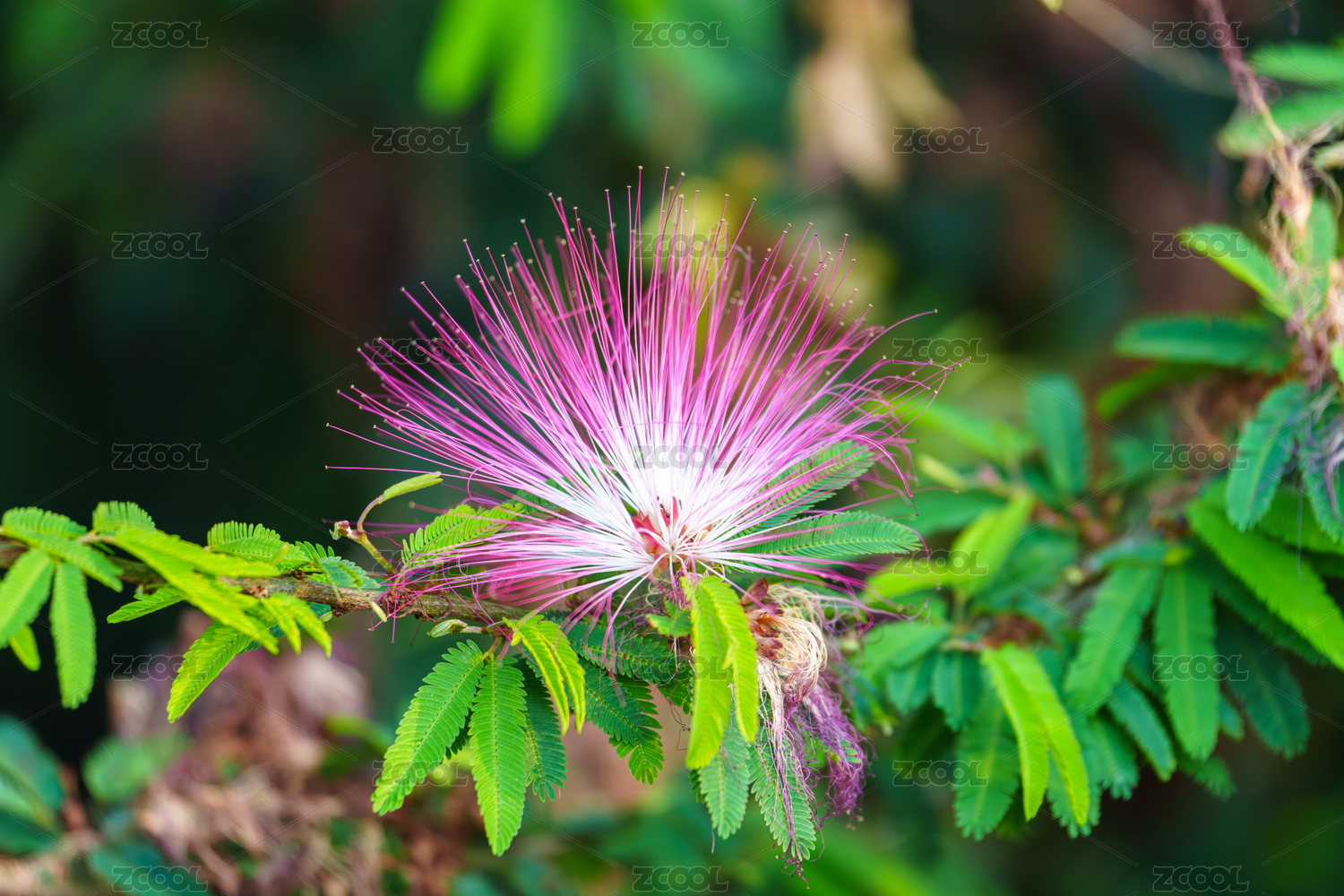 粉红羽毛合欢花特写
