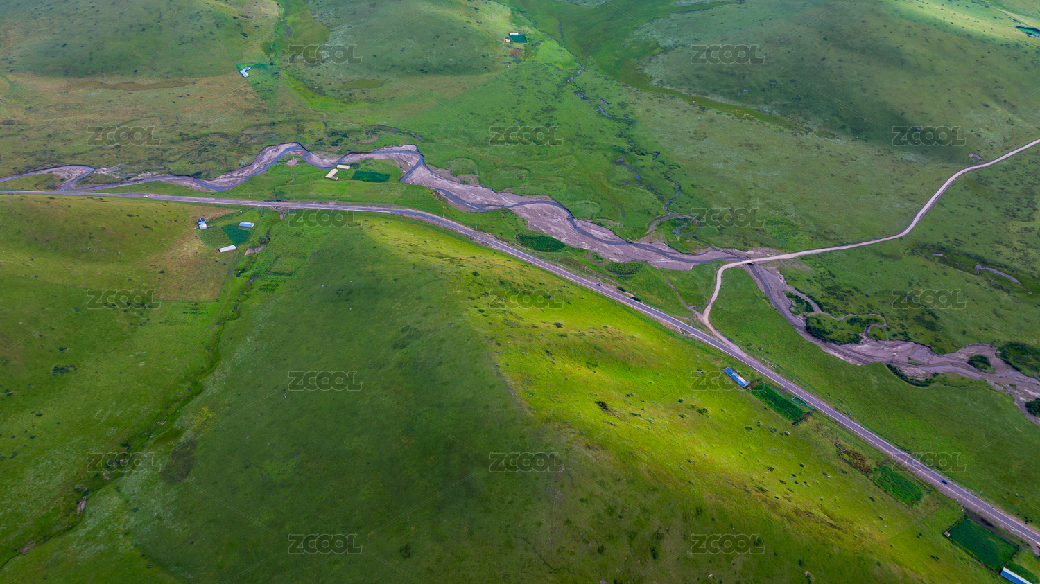 俯拍鸟瞰航拍若尔盖大草原上的羊肠小道
