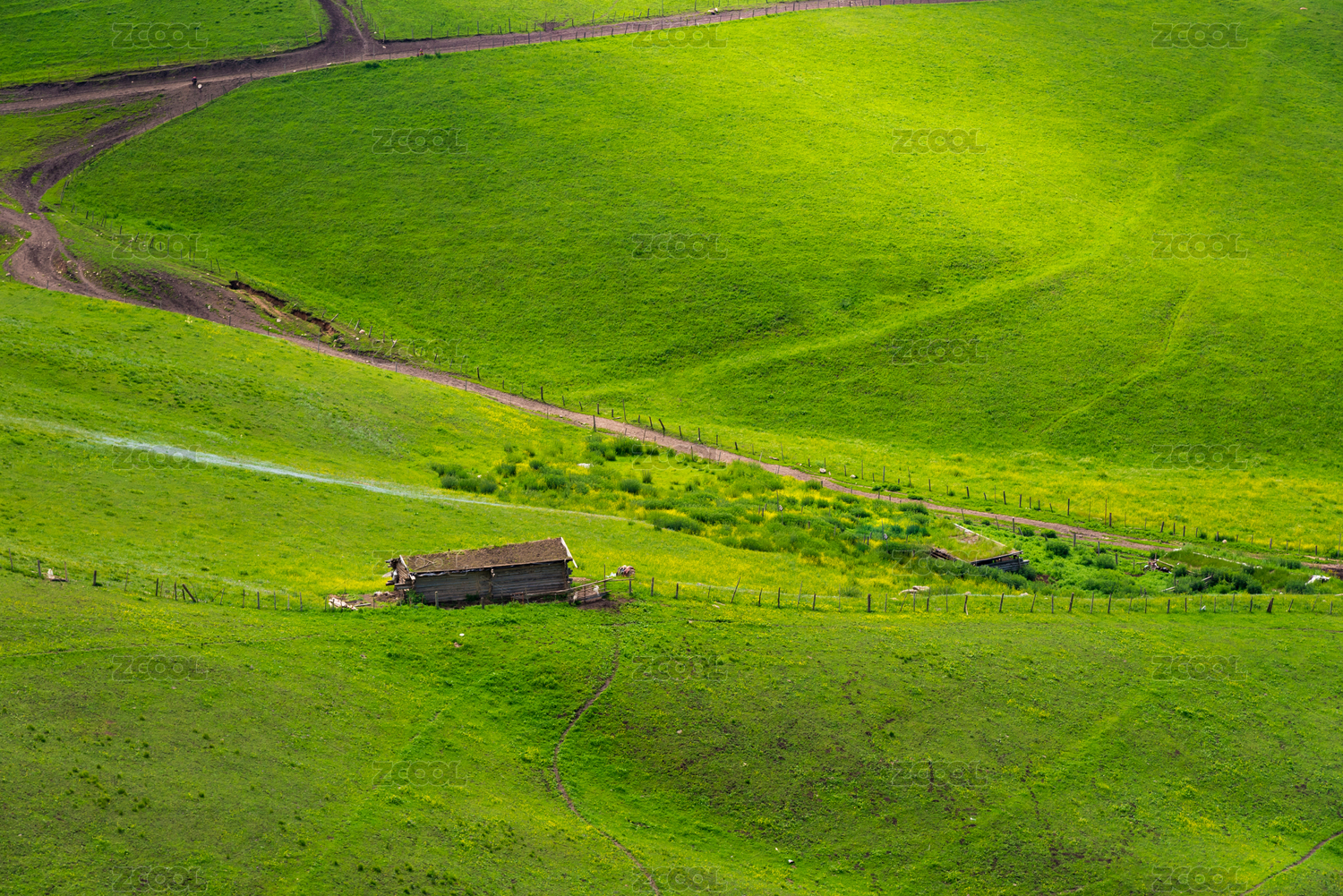 清晨在内蒙古乌兰布统草原牧民赶着羊群去放牧
