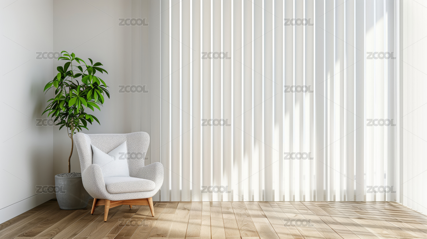 3D白色光影室内椅子木地板三维空间场景