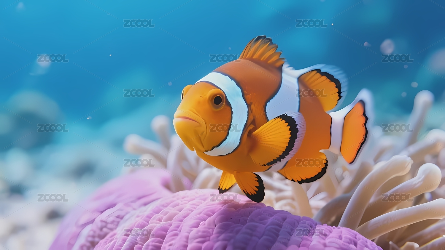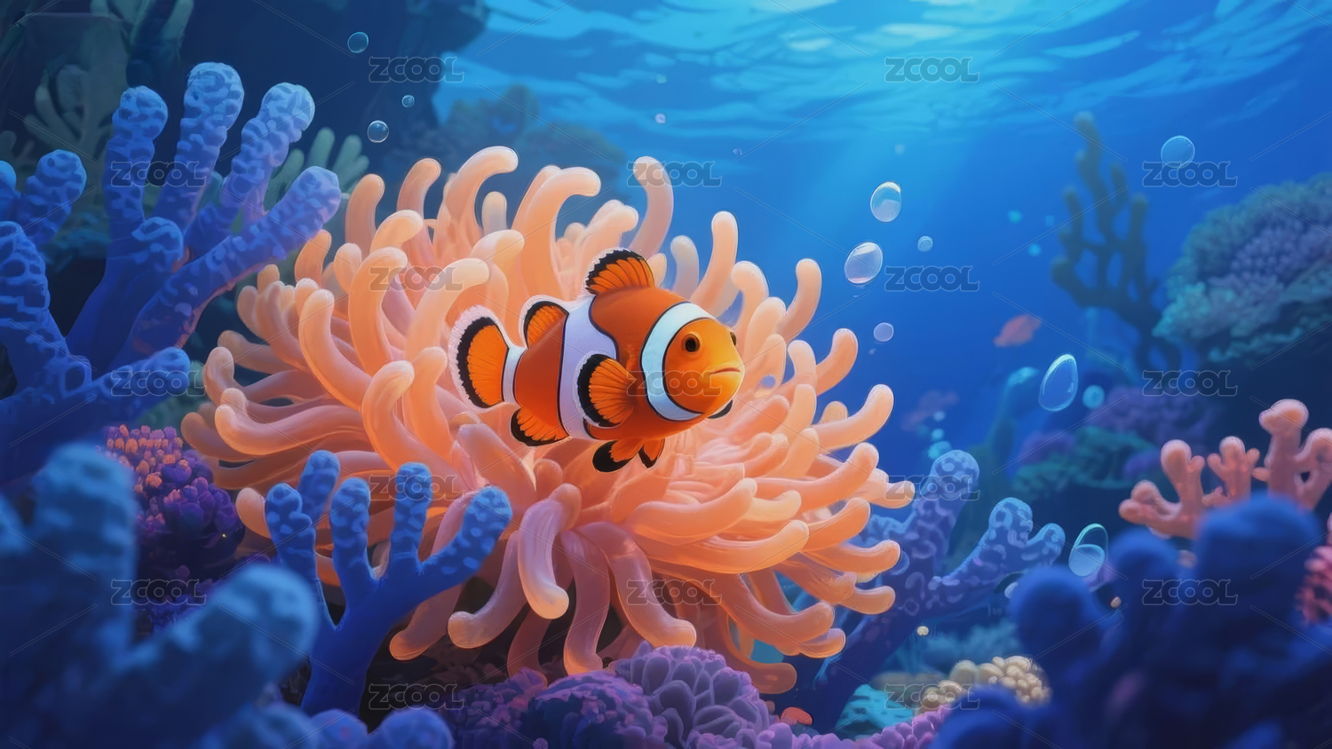 3D卡通梦幻珊瑚礁小丑鱼