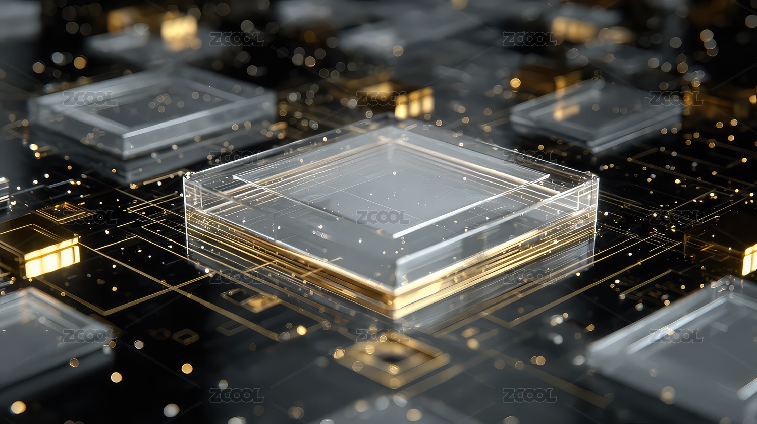 透明立方体与金色光效