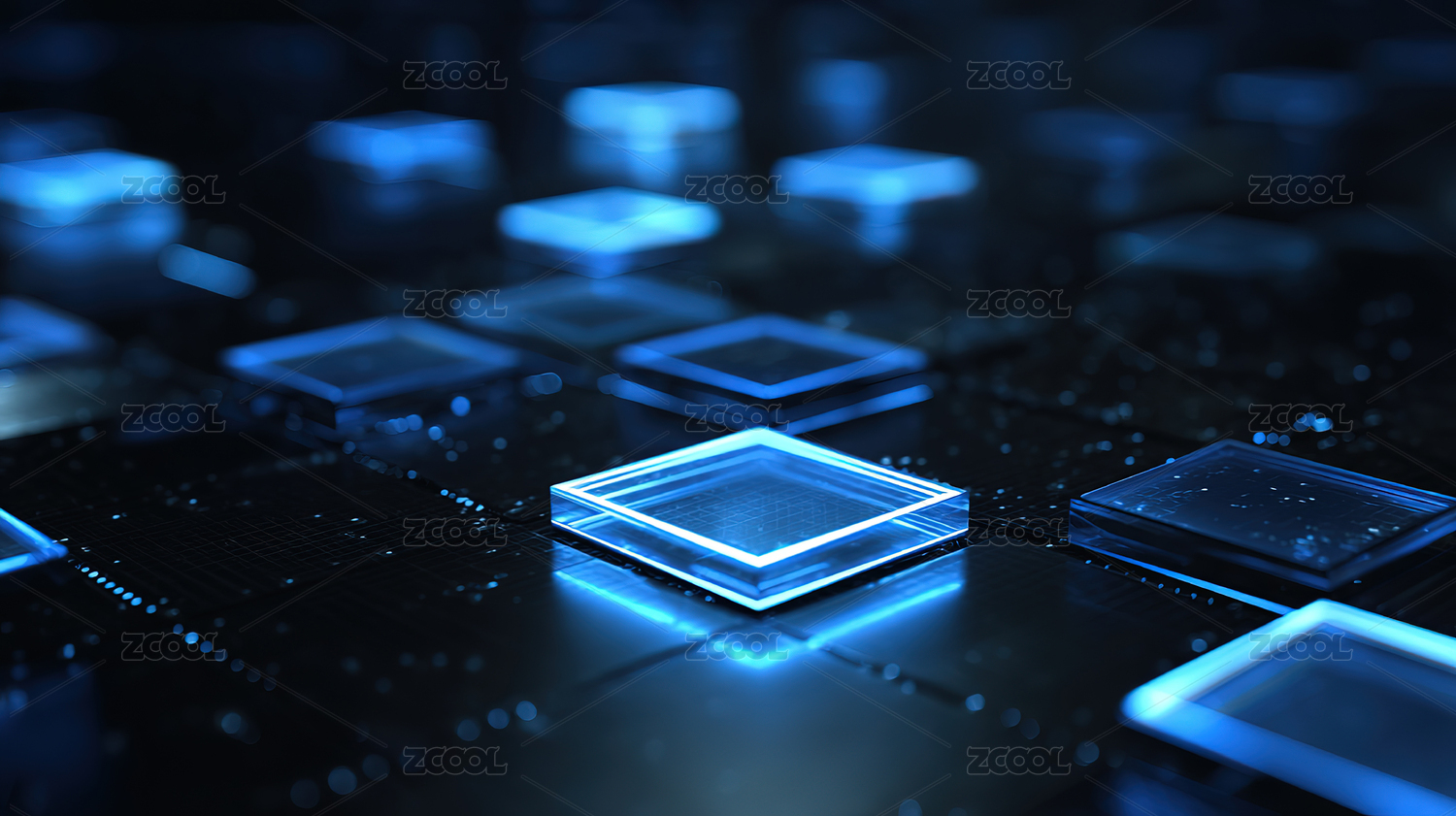 蓝色发光方块科技场景
