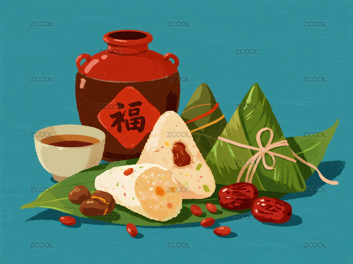 粽子,红枣,节日,传统,美食,糯米,粽叶,酒壶,美酒,酒坛