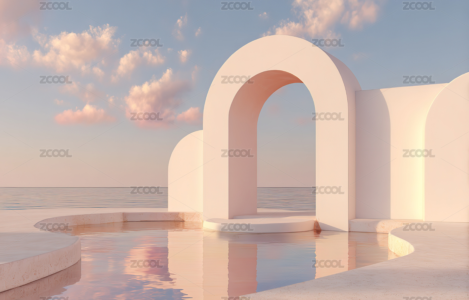 拱门,粉色,反射,柱子,建筑,架构,简约,装置,水面,圆形
