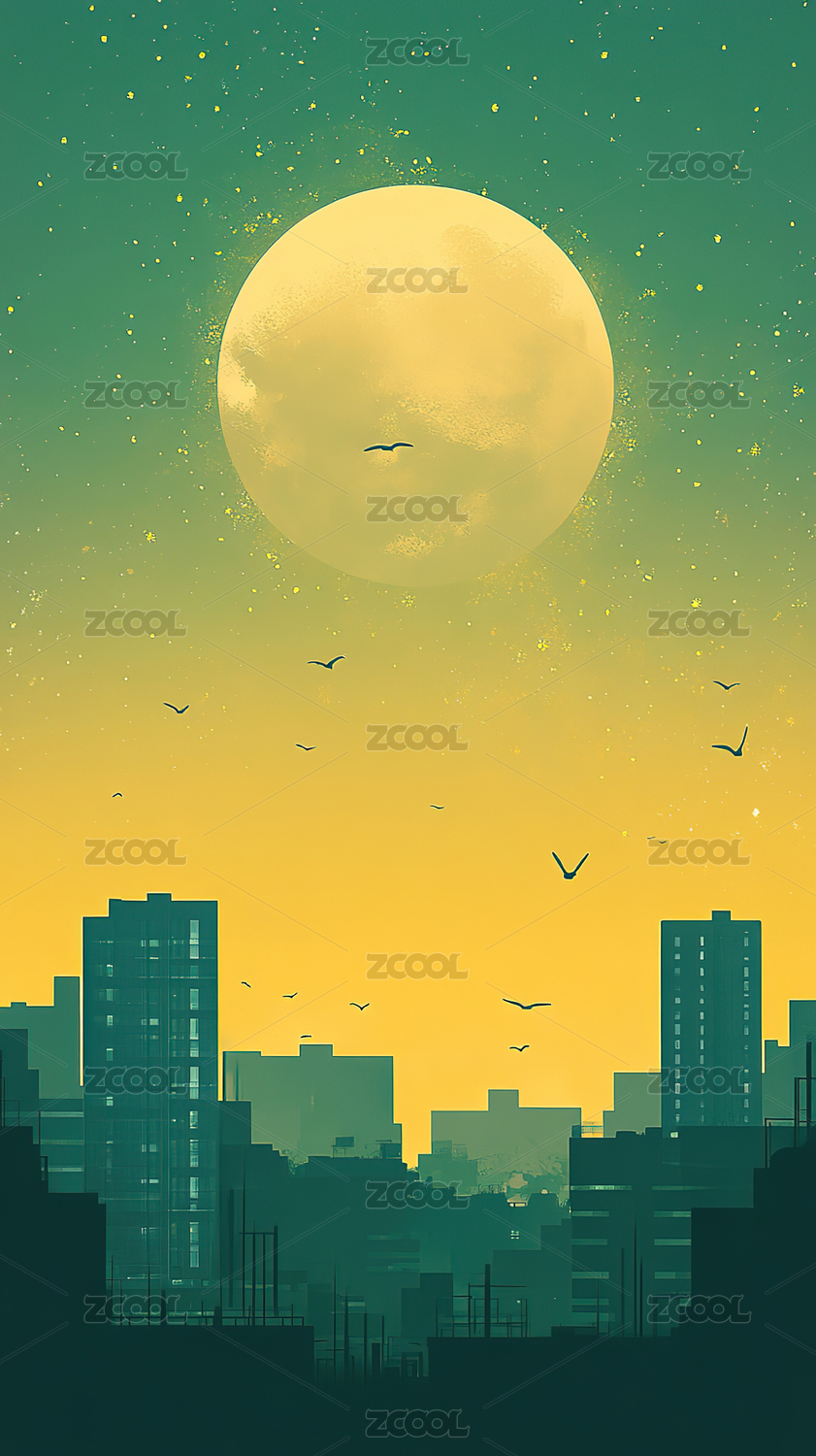 城市夜空与明月
