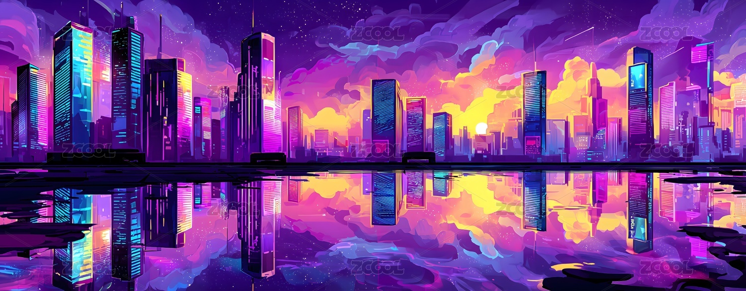现代,天空,宇宙,夜空,幻想,色彩,反射,光影,闪耀,城市