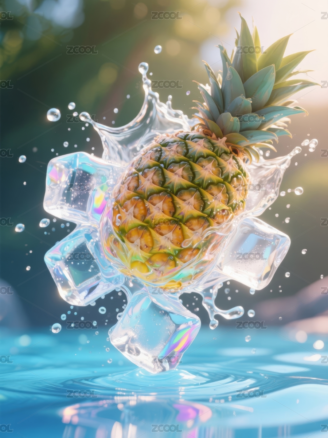 菠萝冰块清凉创意场景