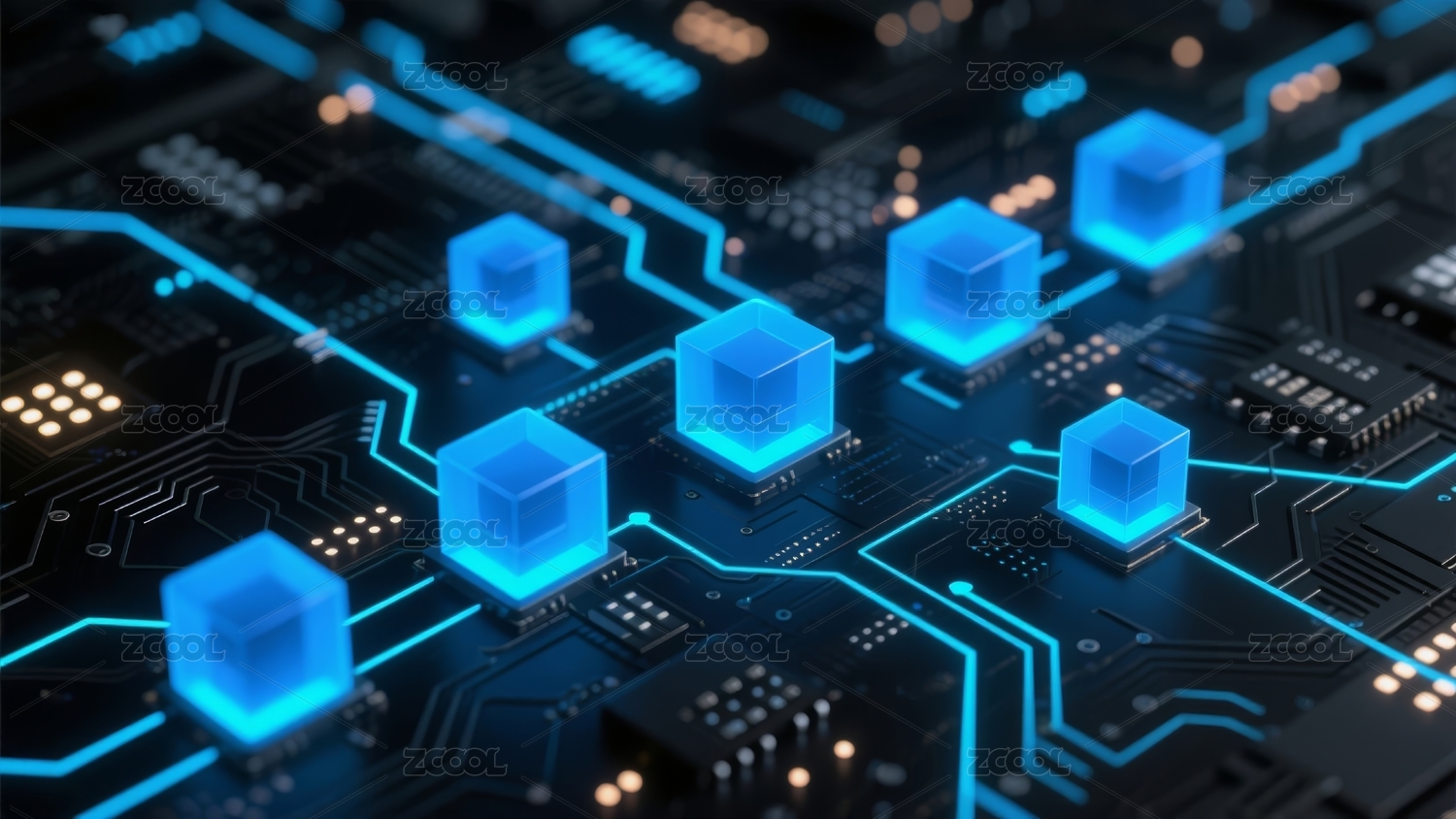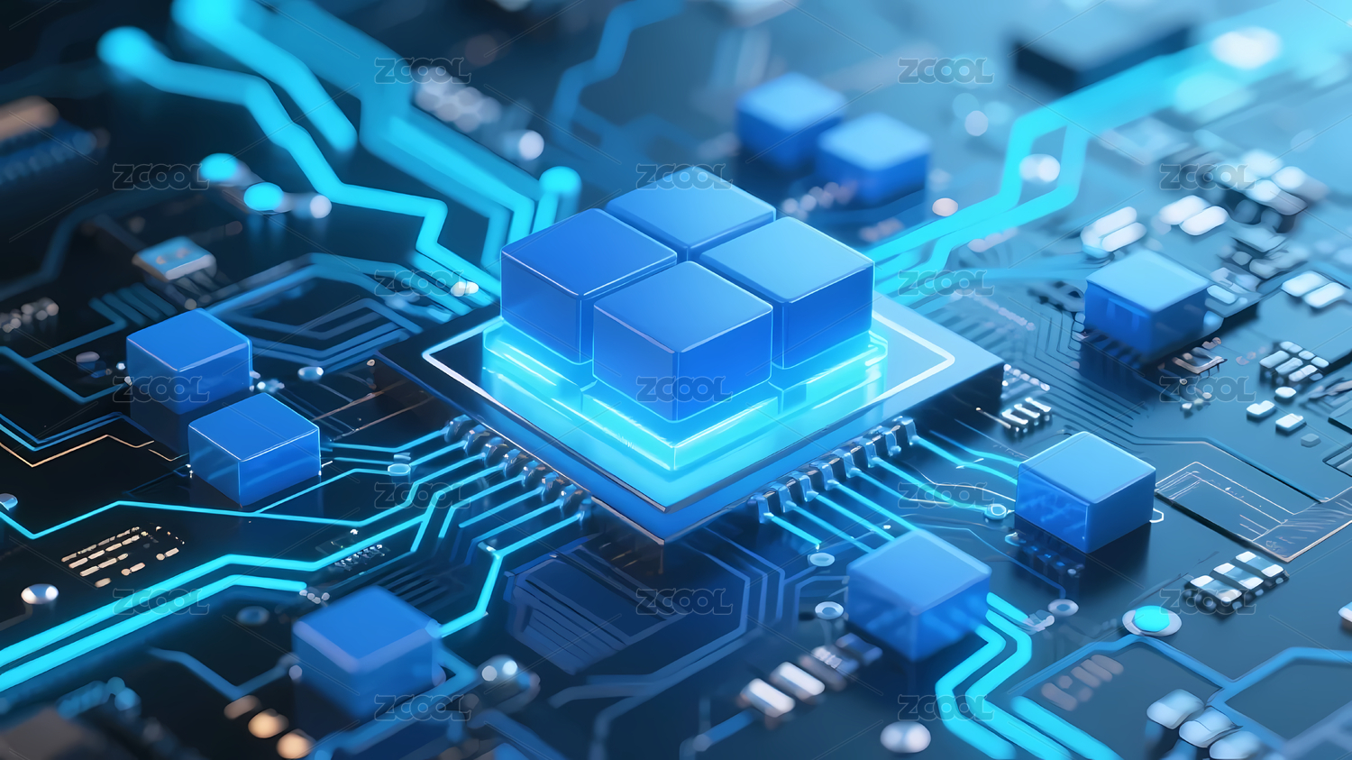 黑色立方体与蓝色电路
