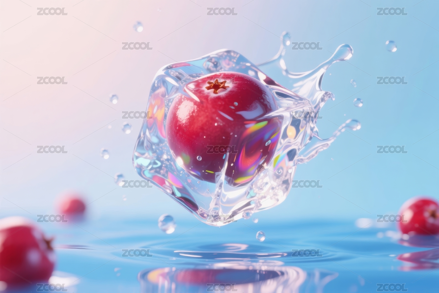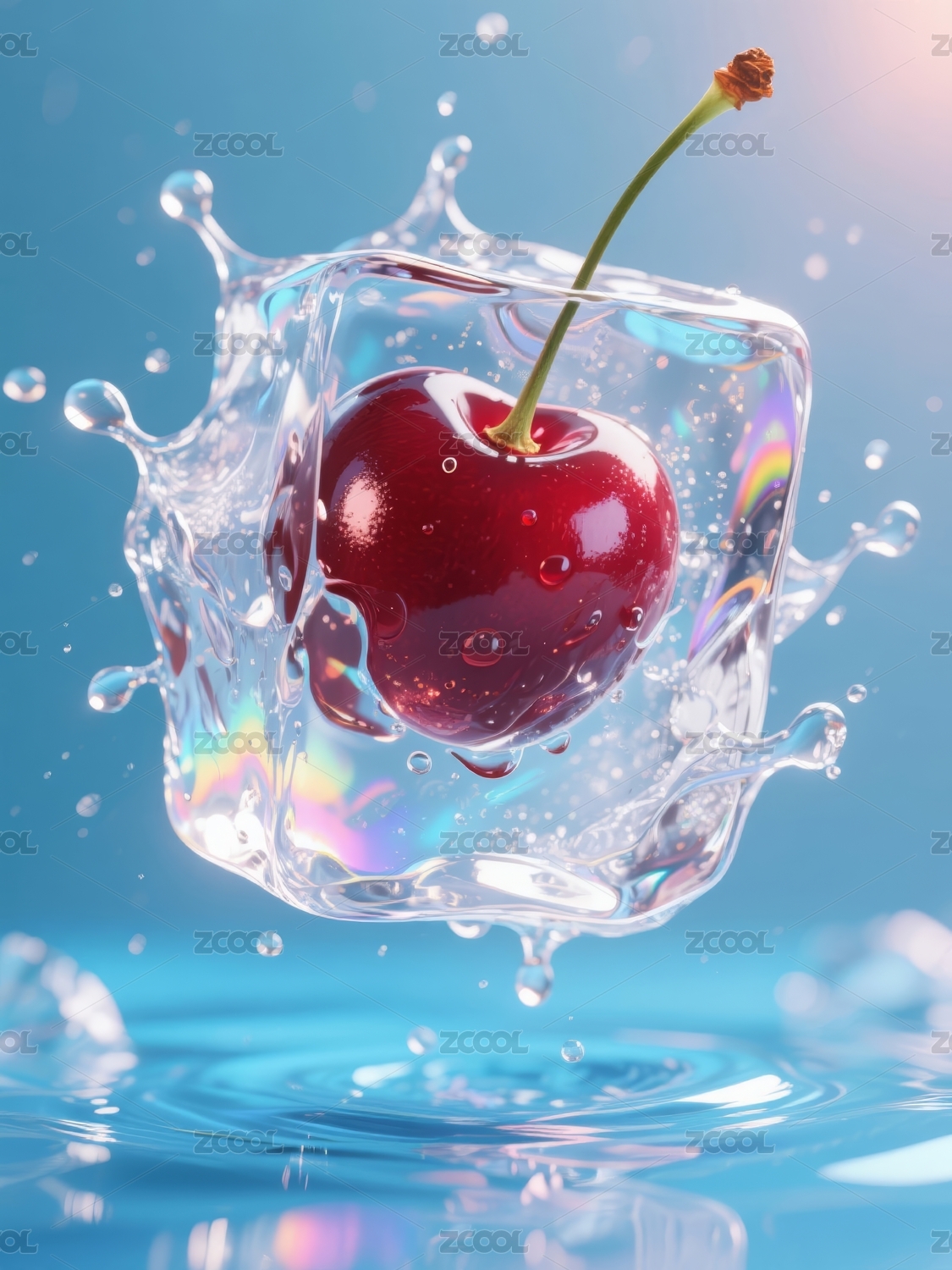 樱桃入水透明冰块场景