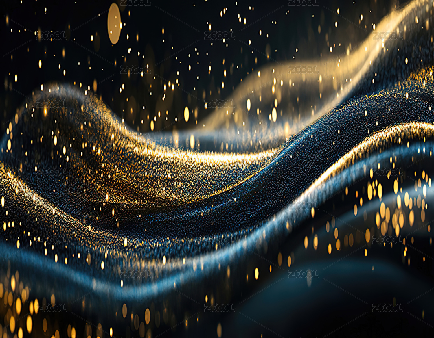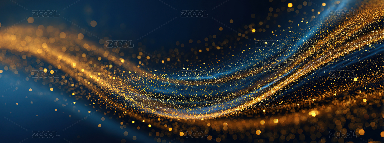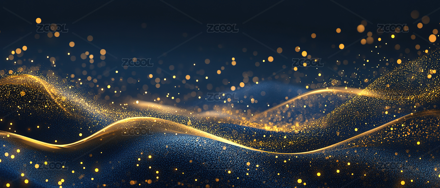 金色光点流动的蓝色波浪背景