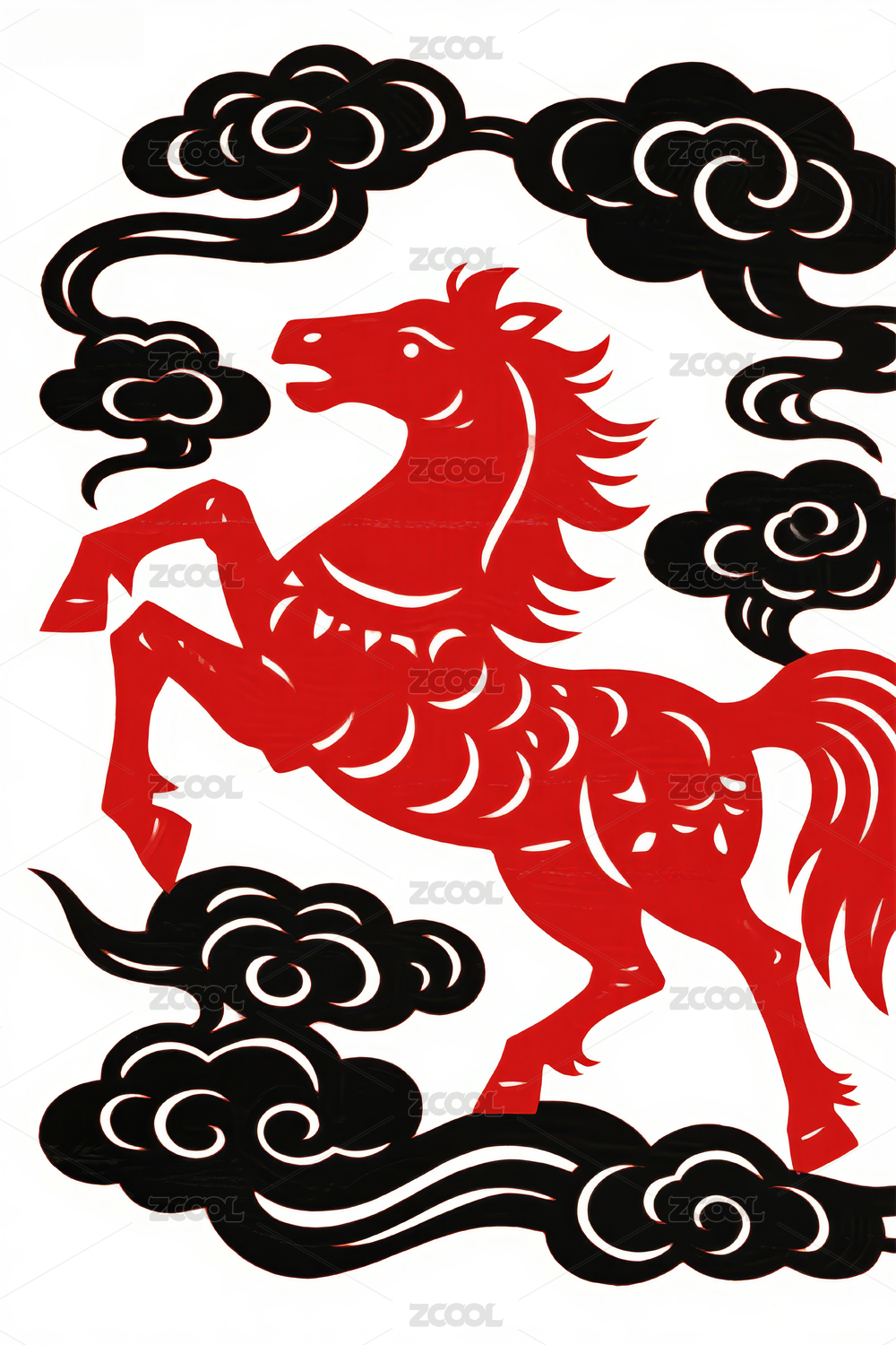 马年,红色,背景,传统,文化,装饰,祥云,设计,图案,白色