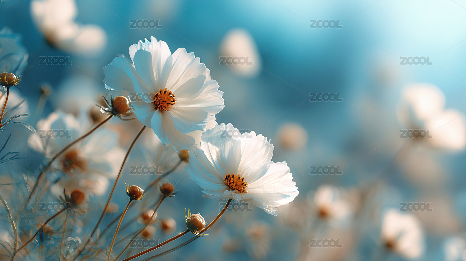 棉花,花朵,蓬松,风动,轻柔,茎干,棕色,对比,天空,粉彩