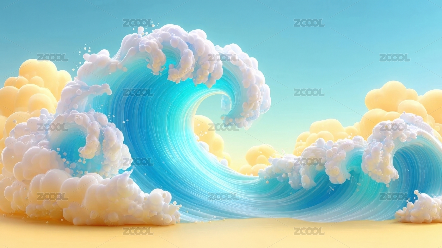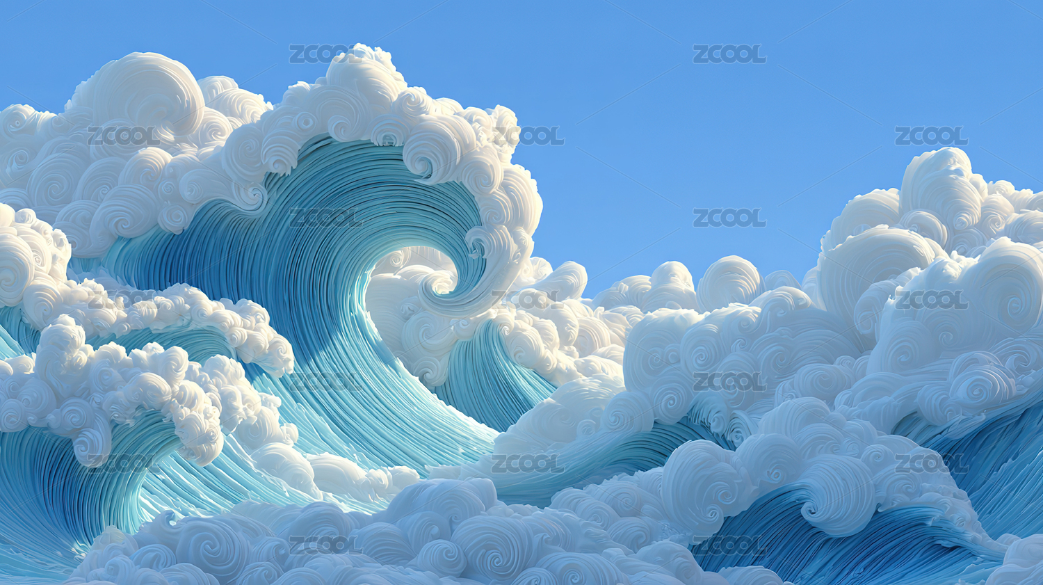立夏节气海浪国潮风景夏天海边冲浪场景插图