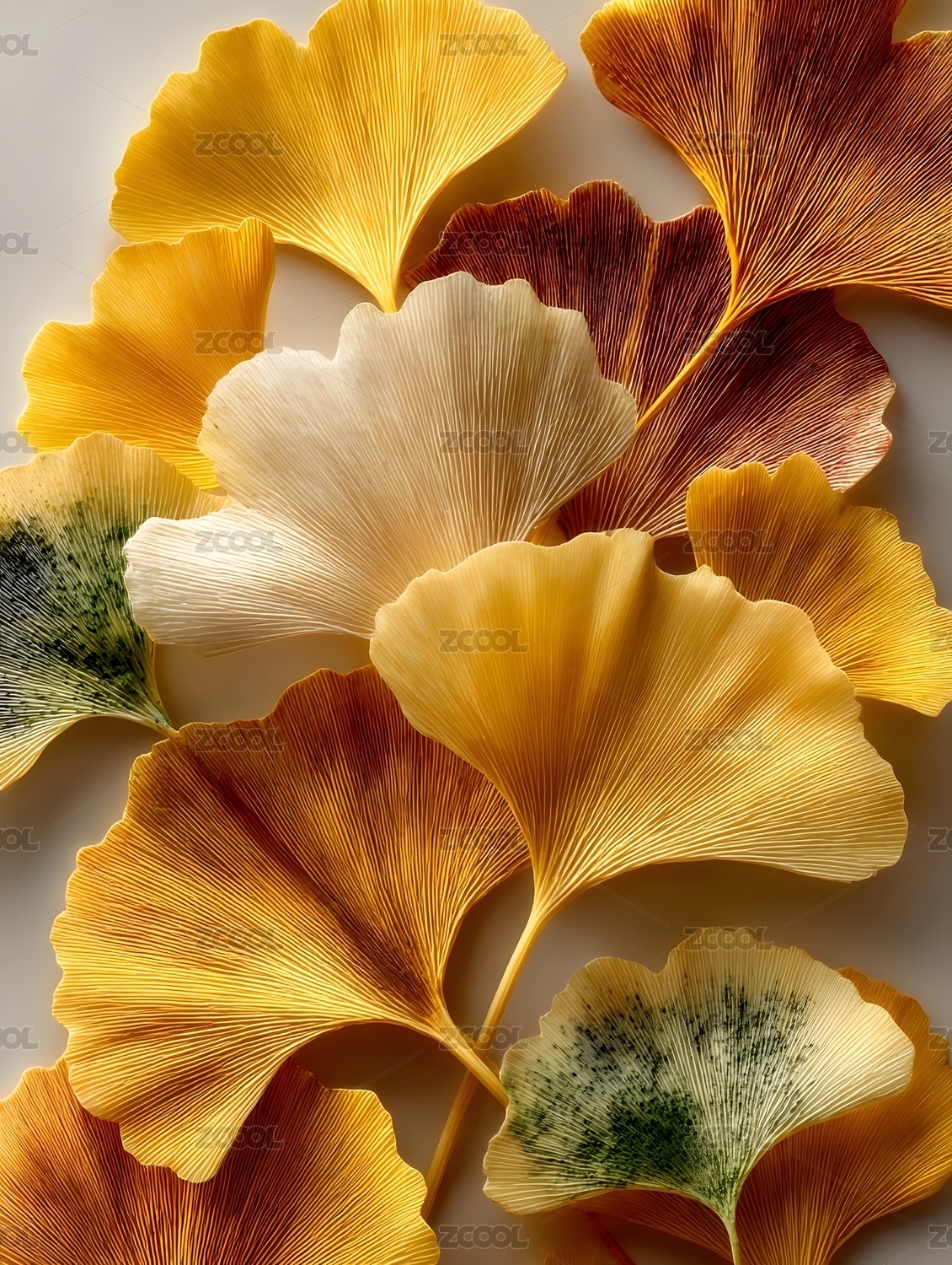 多彩银杏叶艺术特写