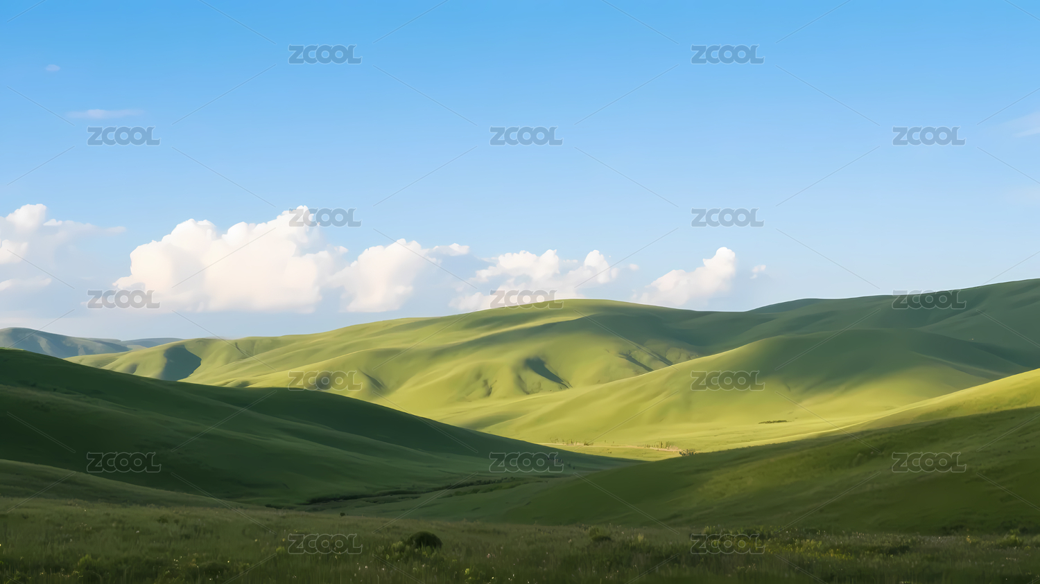 蓝天白云下的山地草原