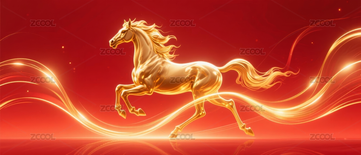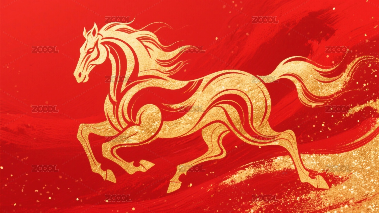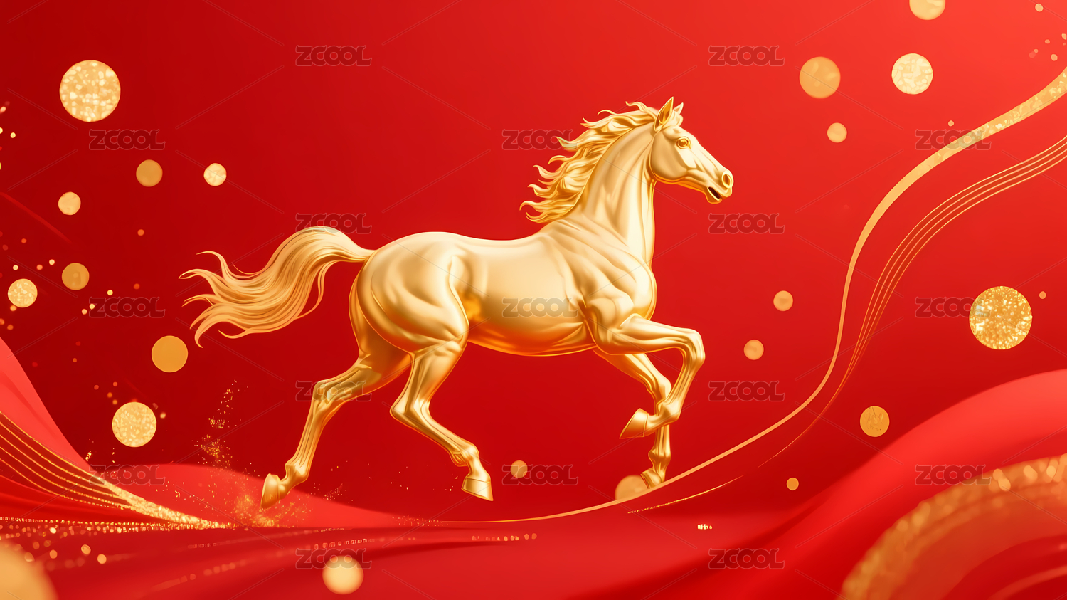 马,福,金马,红色,背景,奔跑,金色,光芒,光点,闪光