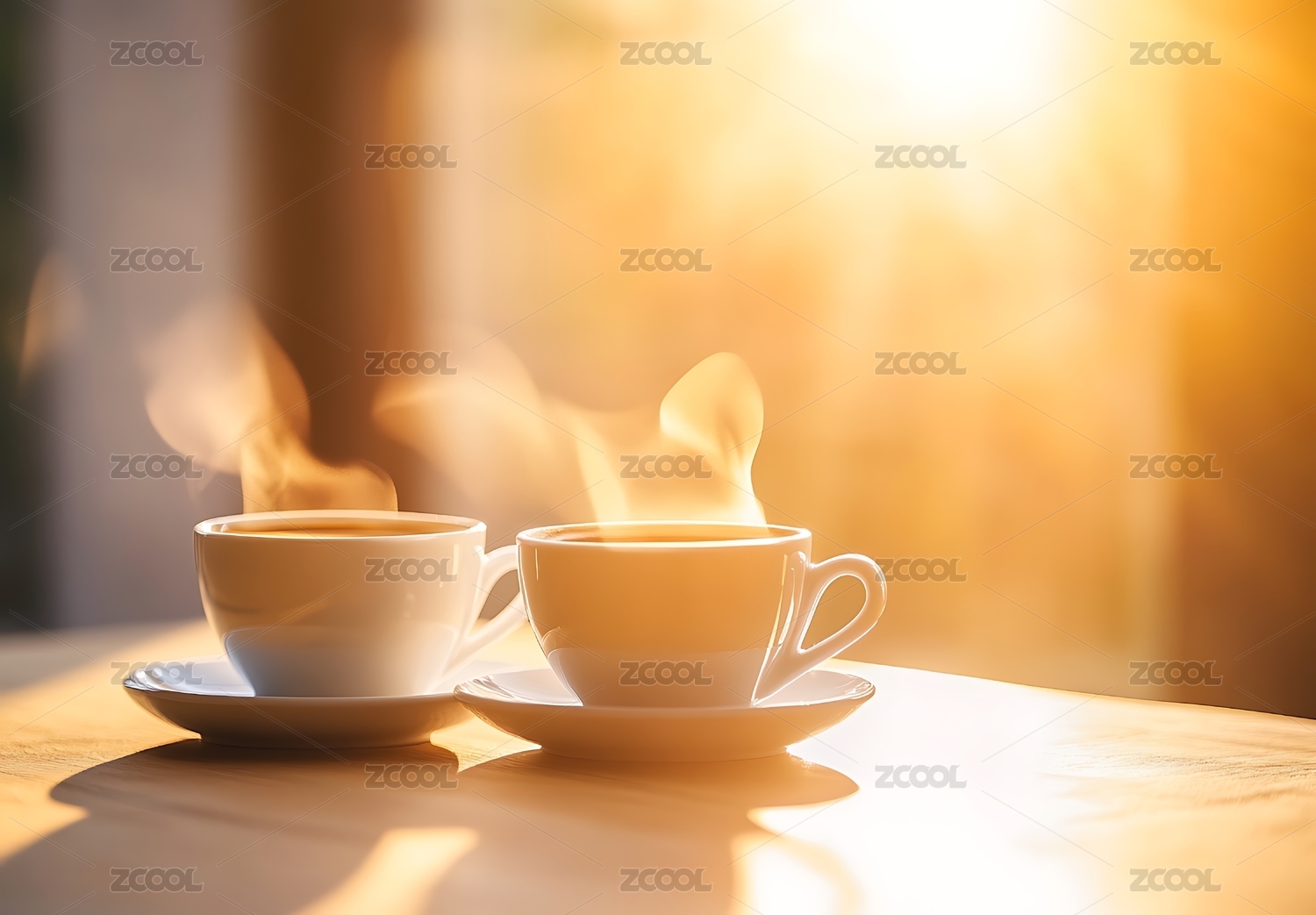 窗边桌上咖啡杯与柠檬的温馨光影场景
