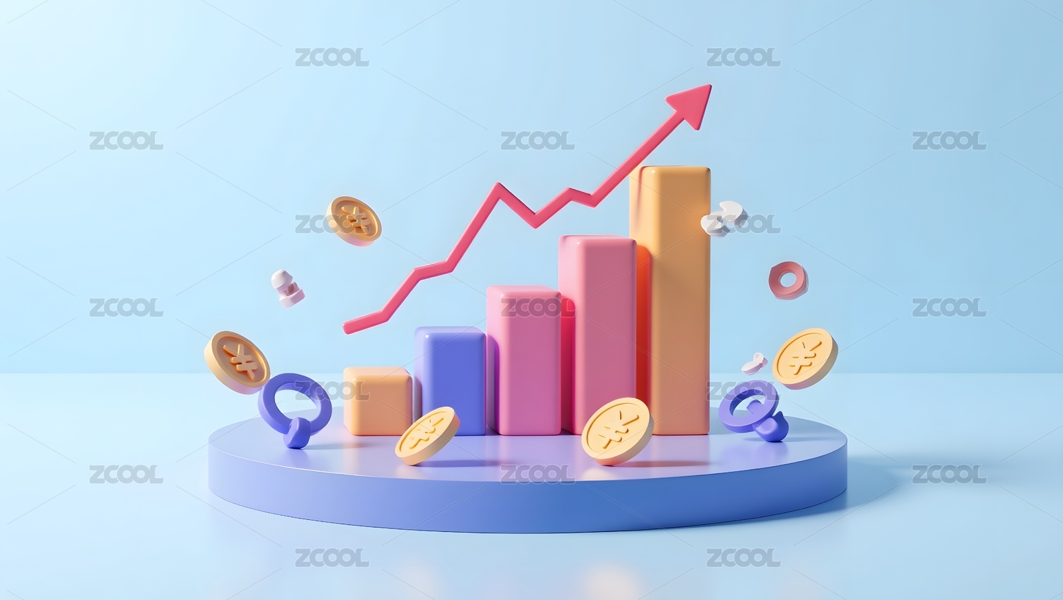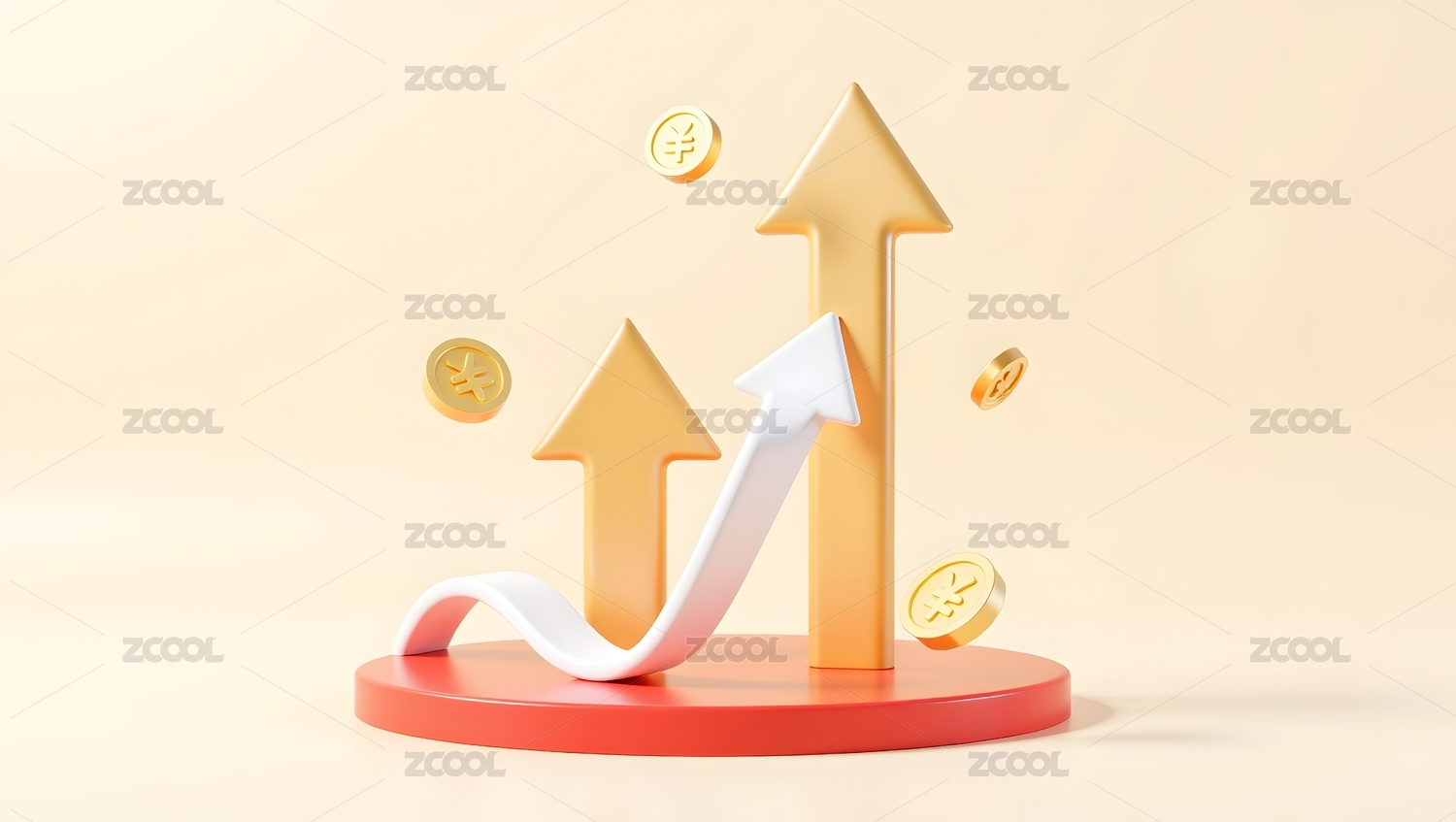 金色箭头与硬币象征经济增长