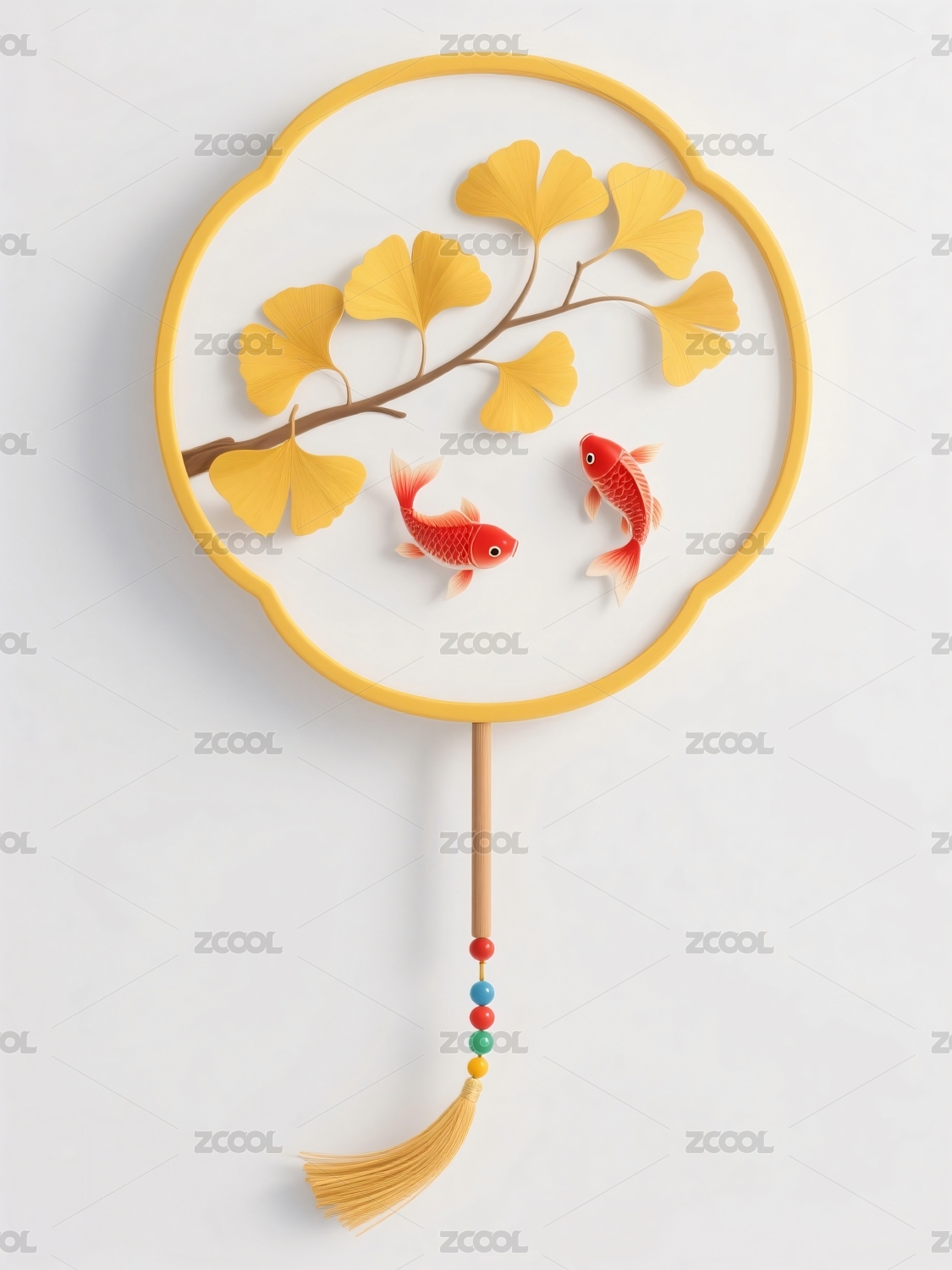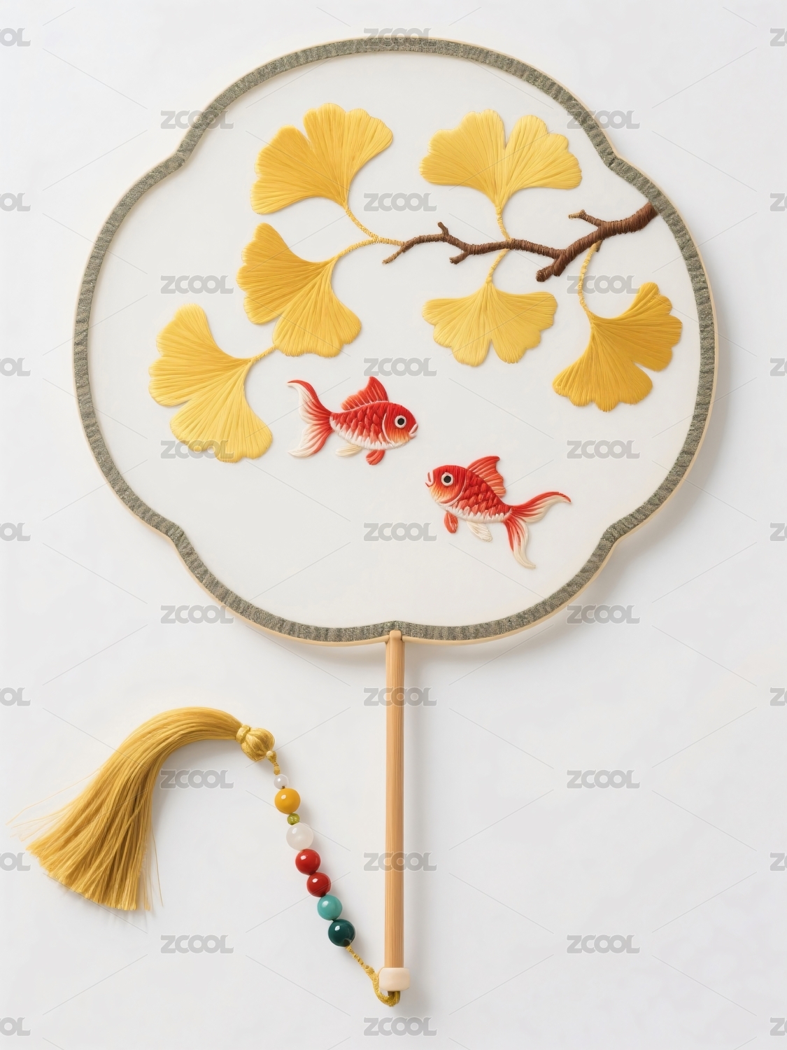 圆形团扇红鲤银杏