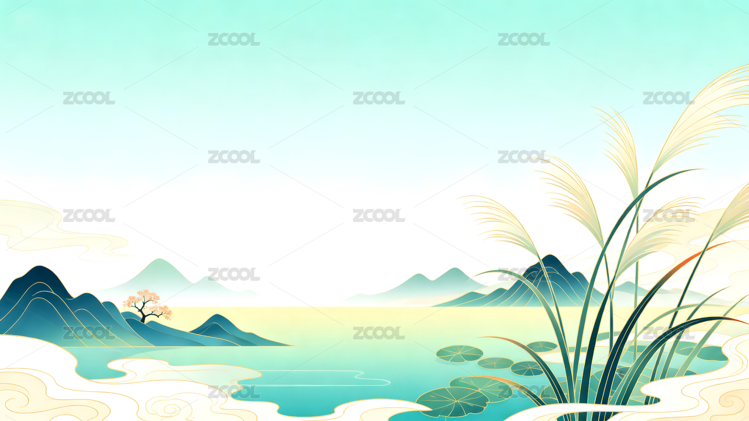 山水荷花风景插画