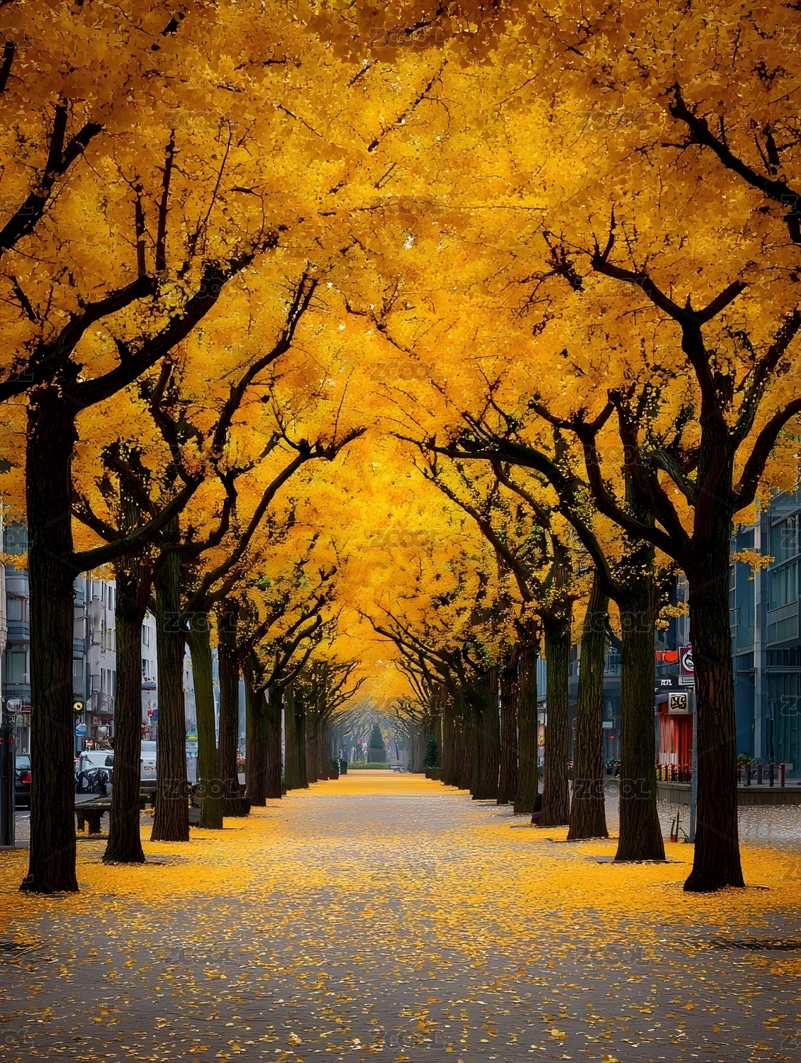 花朵,黄色,枝干,树叶,落叶,秋天,远景,树干,金黄,银杏