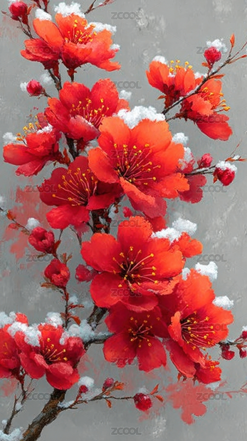 花朵,花枝,花瓣,枝条,叶子,红色,花蕊,背景,自然,植物