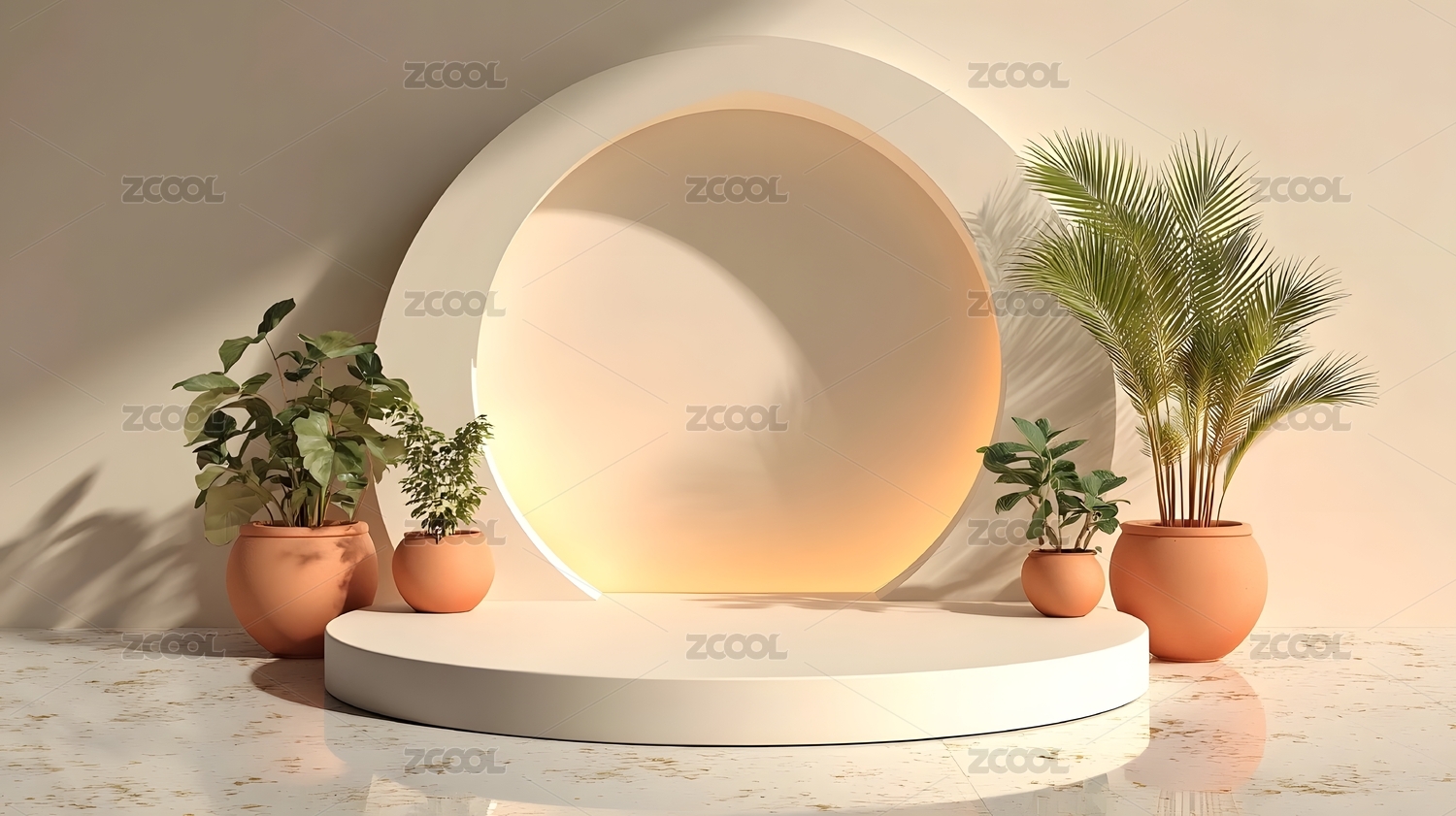 大理石展台与绿植装饰