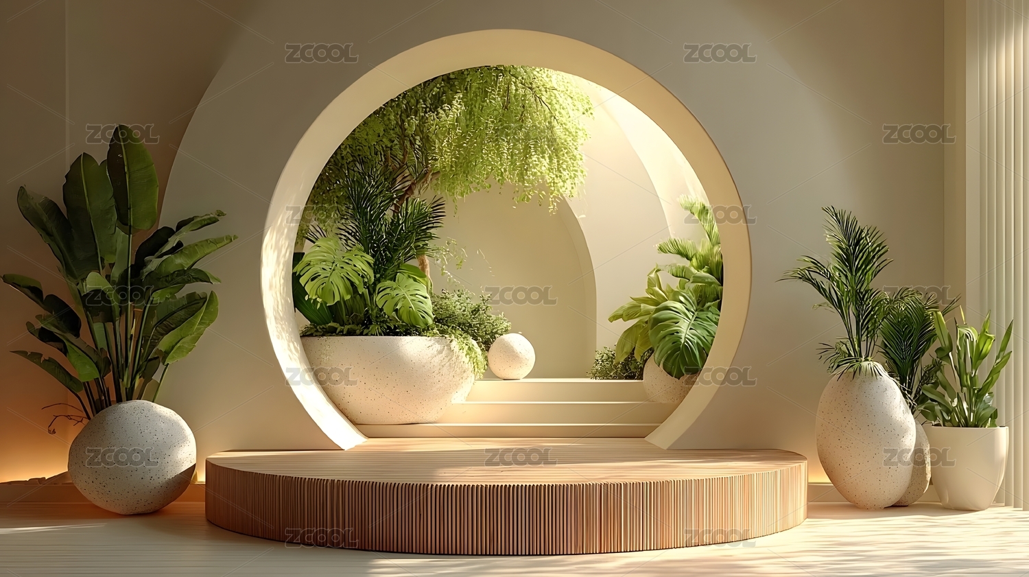 圆形拱门内的绿植空间