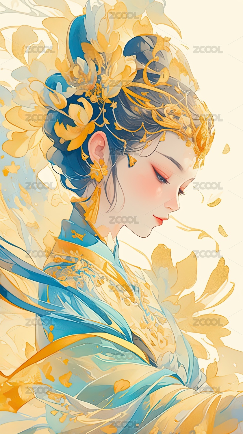 华丽古装女子侧身肖像