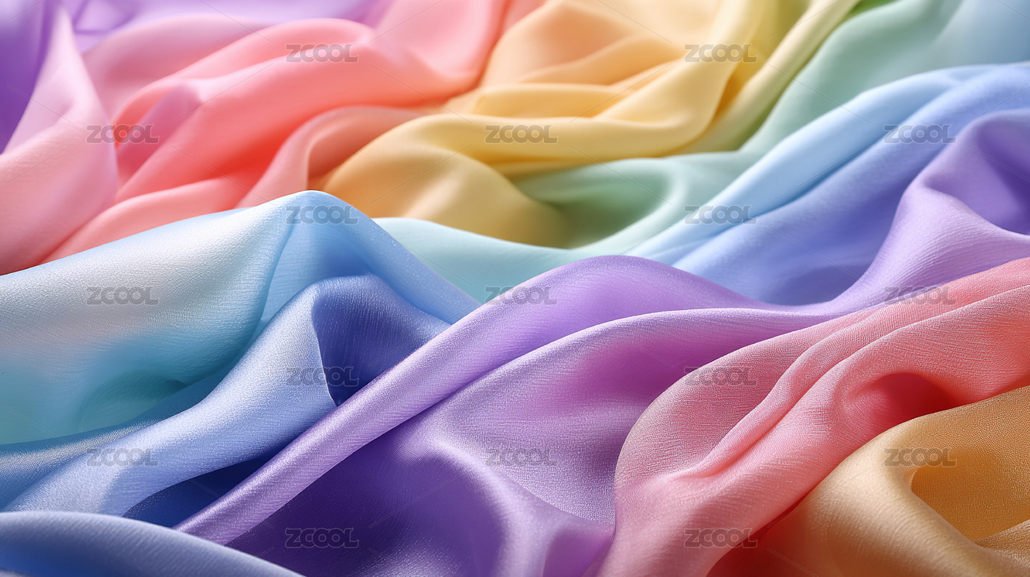 柔和色彩的丝绸布料褶皱
