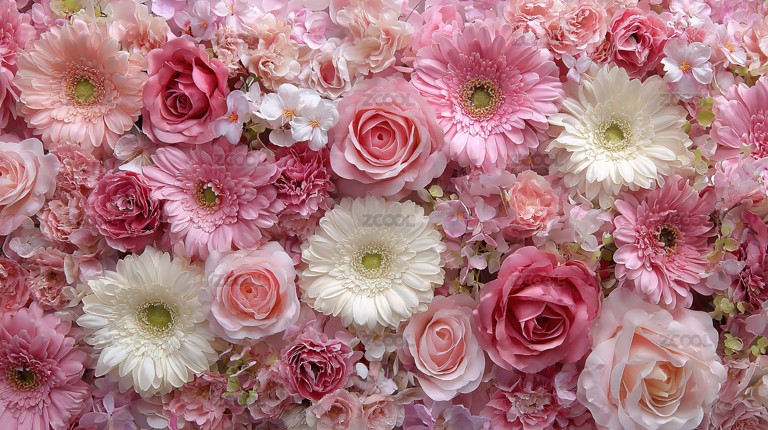 粉色玫瑰与雏菊的完美结合打造浪漫花墙