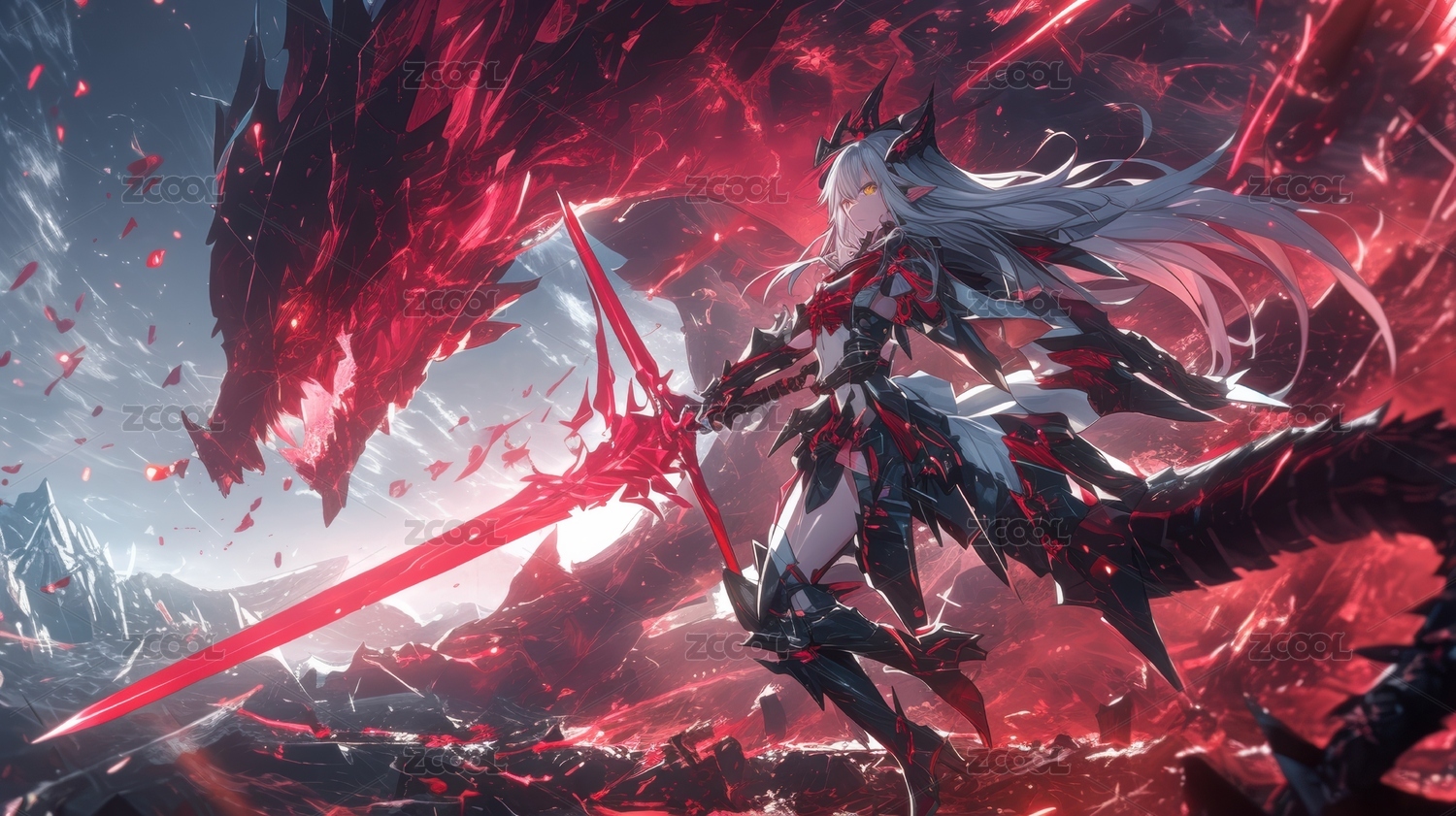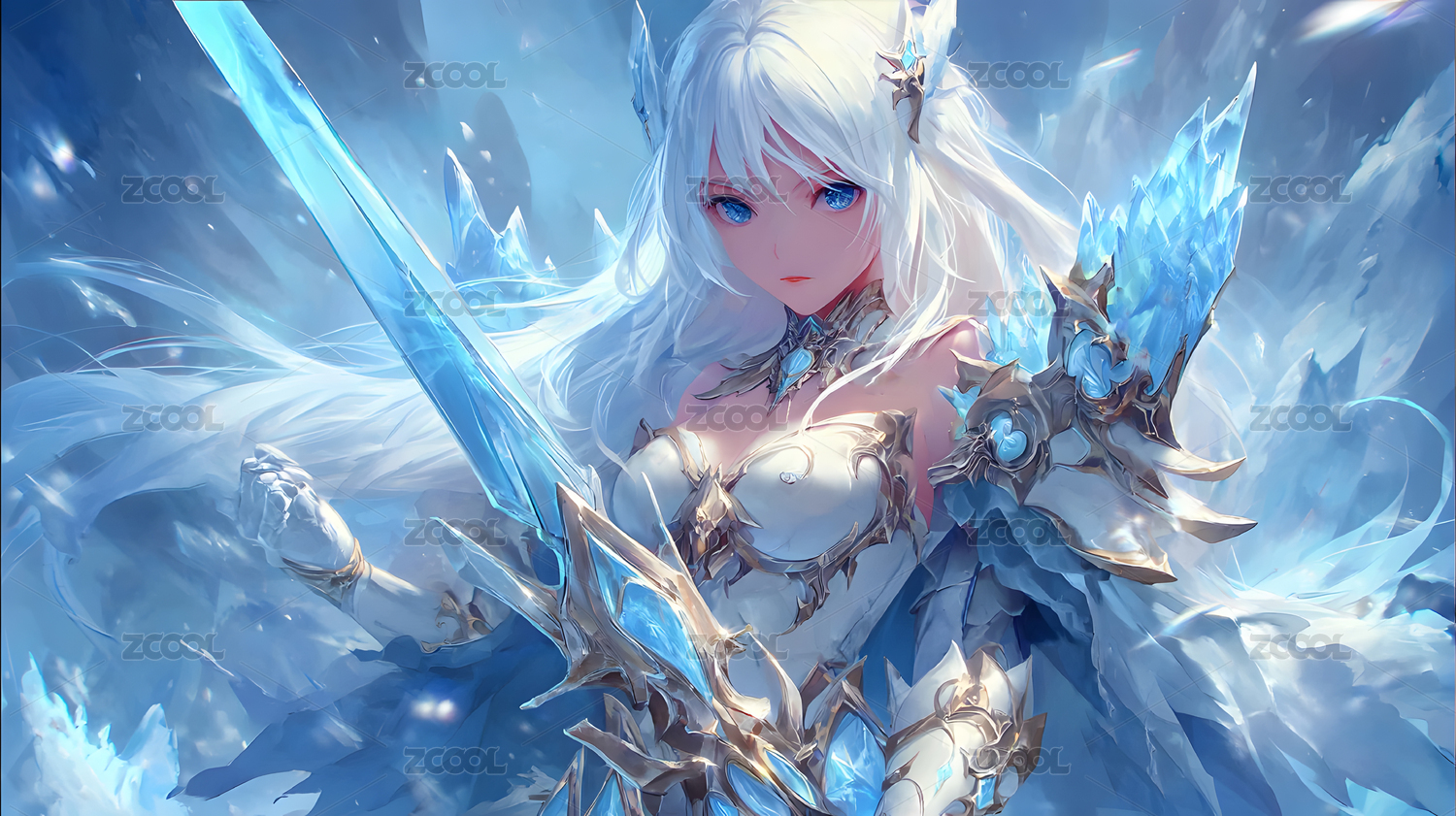 战士,挥剑,火焰,环绕,盔甲,长发,战斗,场景,动态,艺术