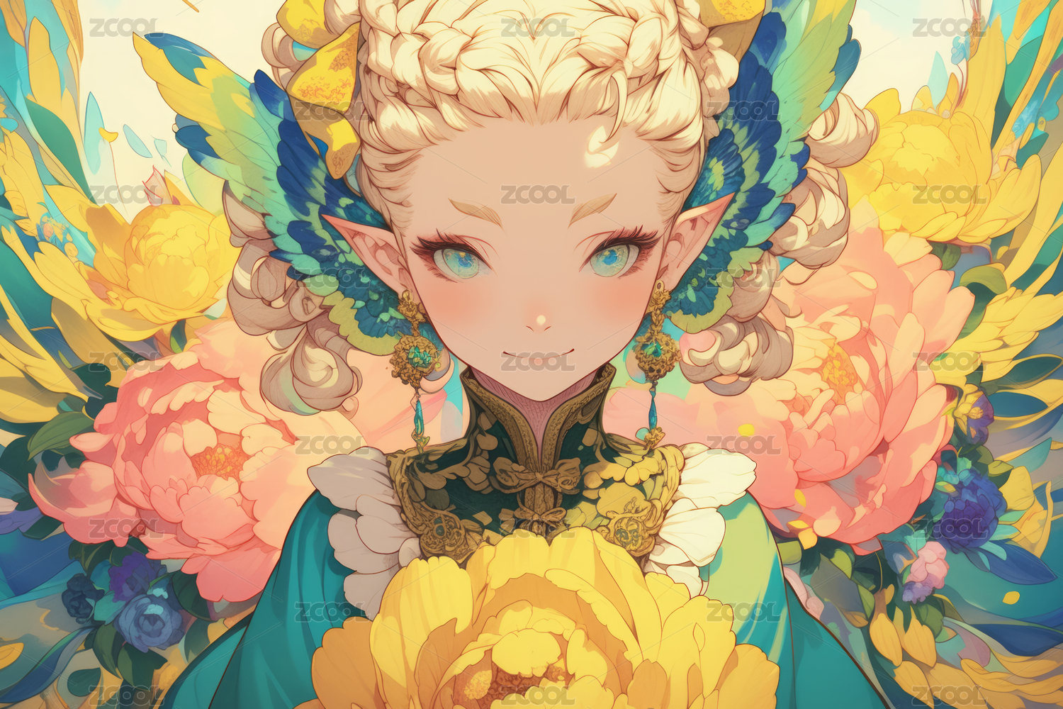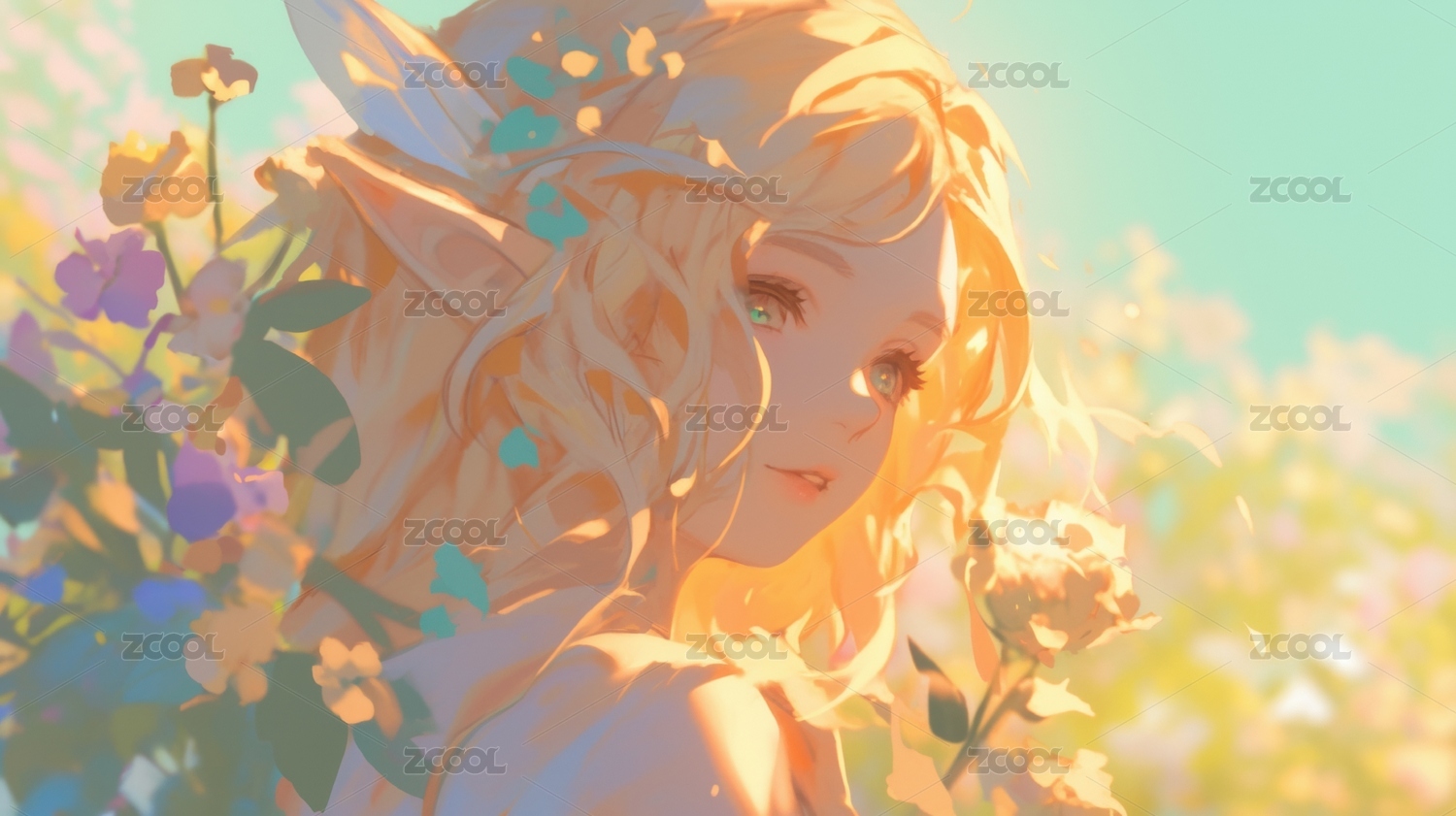 可爱的动漫女孩缤纷的色彩壁纸背景